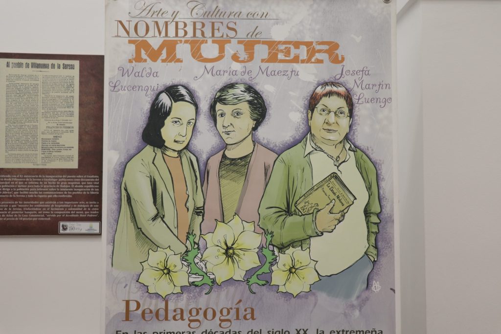 En esta propuesta de la Asociación de Gestores Culturales de Extremadura, se pueden observar a María Goyri y Carmen Conde, que abrieron las puertas de la Universidad a la mujer española; Walda Lucenqui, María de Maeztu o Josefa Martín Luengo, pedagogas; María Moliner, María Zambrano, María Teresa León, Zenobia Camprubí, Rosa Chacel o Dulce Chacón, todas mujeres del mundo de las letras y del pensamiento y artistas como María Blanchart y Maruja Mallo pintoras, las bailarinas Tórtola Valencia, Raquel Meyer , Encarnación López “La Argentinita” y Carmen Amaya bailaoras, María Guerrero y Margarita Xirgu o Rosario Pi y Pilar Miró, directoras de cine.