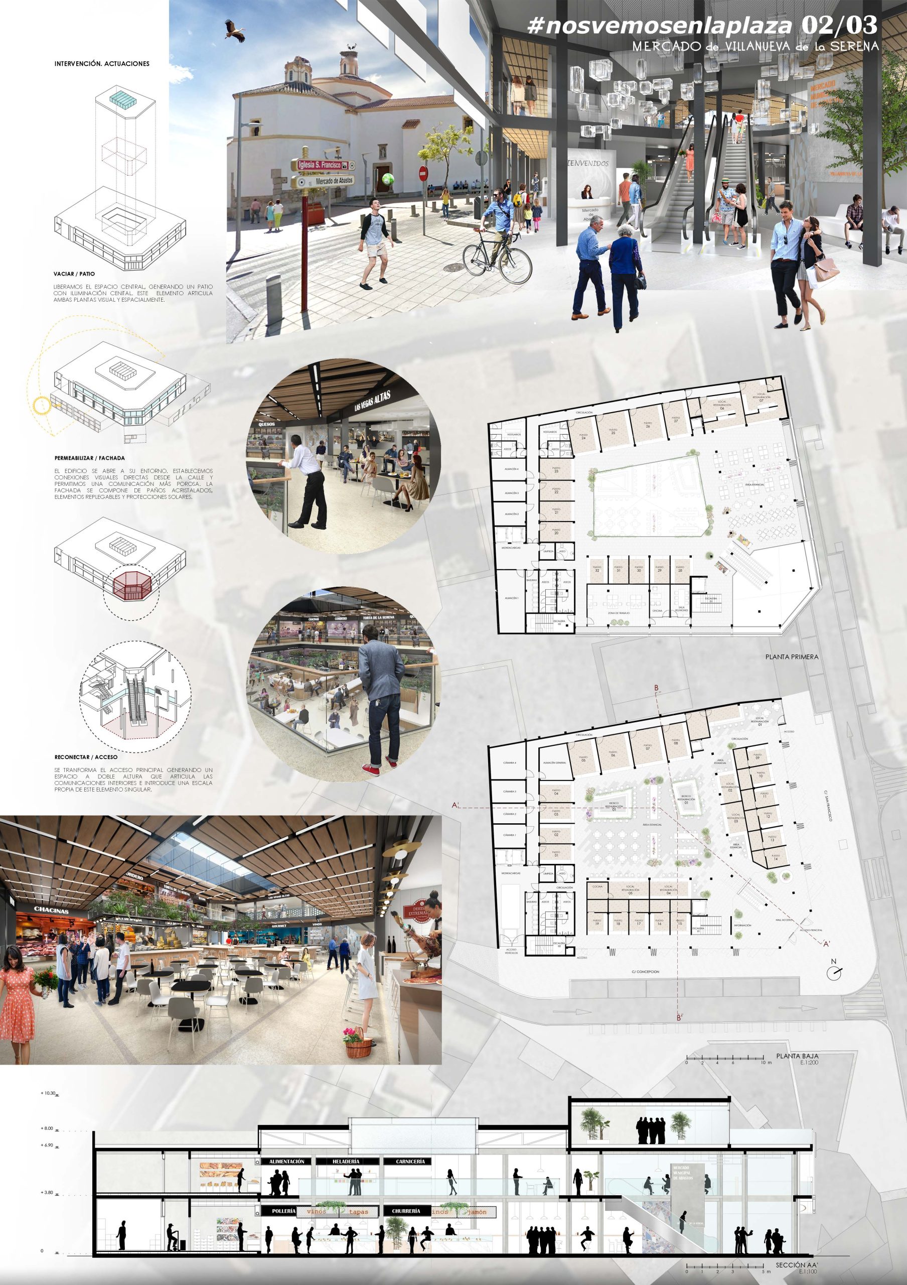 Recordar que esta reforma supondrá una transformación total del edificio que se abre al exterior para integrarse en el lugar en el que está ubicado. El proyecto #NosVemosEnLaPlaza, contempla conservar la estructura de los pilares y forjados de la actual edificación. Solo hay una parte que se derribará de la fachada exterior para ubicar ahí los dos ascensores y las dos escaleras mecánicas, todo ello con un gran hueco central, que simboliza una plaza, y que tendrá un gran lucernario que iluminará todo el espacio central. Se permeabilizan los espacios, conformándose en su totalidad con 32 puestos, de los que 19 estarán en la planta baja, 13 en la primera y un espacio en la terraza. De los 32 puestos totales, en la baja se destinarán 7 para restauración, 4 en la planta primera, y uno en la terraza.
