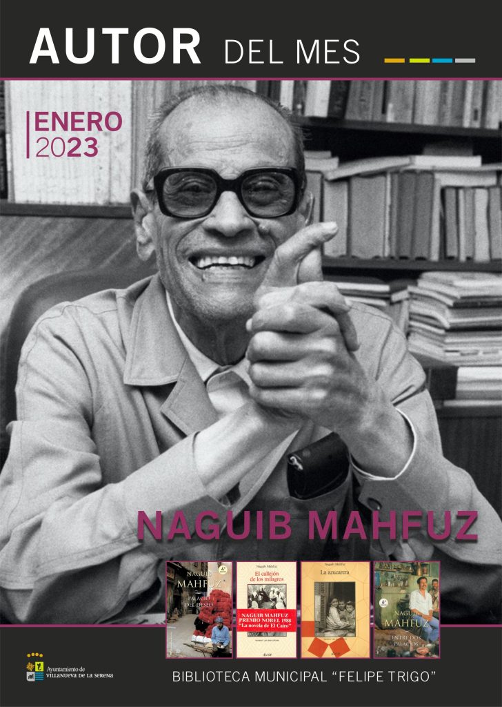 “Palacio del deseo”, “El callejón de los milagros”, “La azucarera” y “Entre dos palacios” son los nuevos títulos que se podrán encontrar en la biblioteca Felipe Trigo de Naguib Mahfuz, autor de este mes de enero. Licenciado en filosofía, fue director del departamento técnico del Instituto de Artes y presidente del Instituto Nacional de Cine. Se le conoce como “un arquitecto de la novela árabe contemporánea”. A lo largo de su obra, representó repetidamente la ciudad de El Cairo como si fuera un mundo. Su obra incluye 33 novelas, algunas de ellas llevadas al cine, así como 14 recopilaciones de cuentos y múltiples colaboraciones en la prensa.