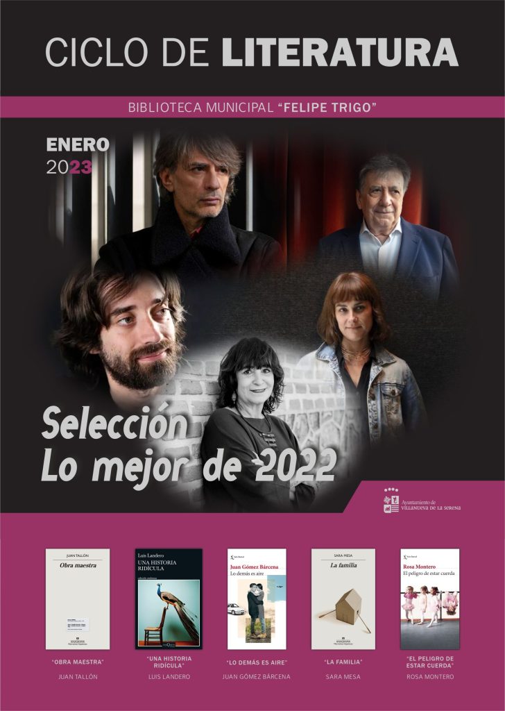 Por último y como cada mes, la biblioteca Felipe Trigo acoge un ciclo de literatura diferente. En esta ocasión, la temática es sobre una selección de lo mejor del 2022. Se componen de un total de cinco títulos “Obra Maestra” de Juan Tallón, “Una historia ridícula” de Luis Landero, “Lo demás es aire” de Juan Gómez Bárcena, “La familia” de Sara Mesa y “El peligro de estar cuerda” de Rosa Montero.