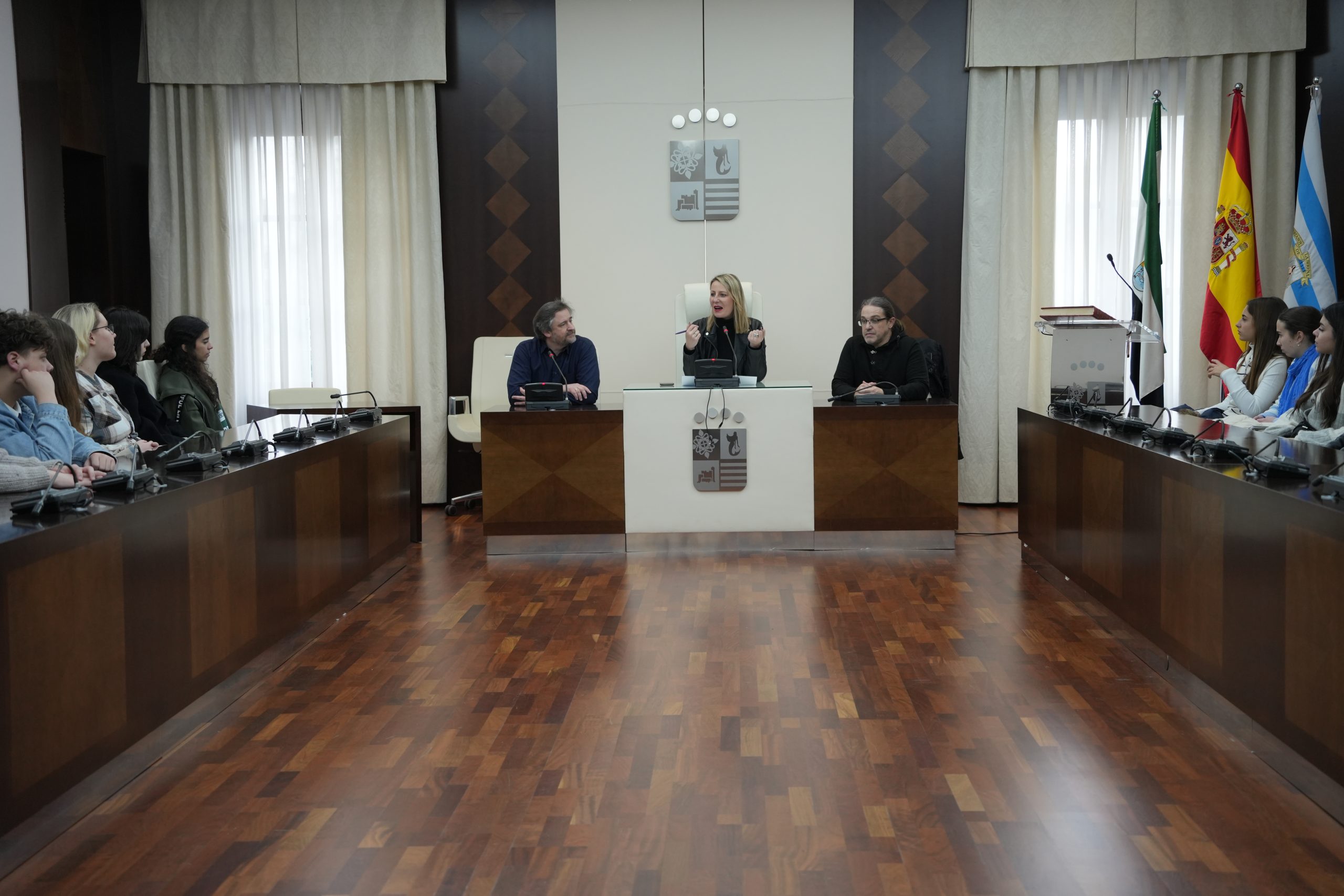 Mónica Calurano, concejal de Turismo, les ha recibido en el salón de plenos donde ha mantenido una charla con los profesores y los alumnos participantes en dicho intercambio explicándoles detalles y curiosidades no solo de la ciudad sino también de los alrededores.