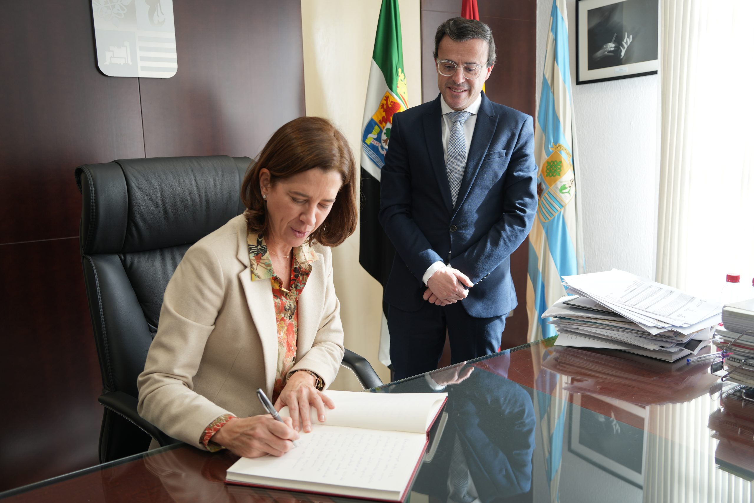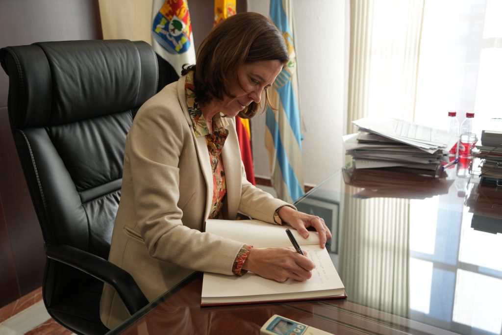 Por último, Javier del Pueyo Cortijo, Javier del Pueyo Villalón junto con Alejandra Kindelán, se han reunido con el alcalde Miguel Ángel Gallardo un encuentro distendido que ha finalizado con la firma de la presidenta en el libro de honor.