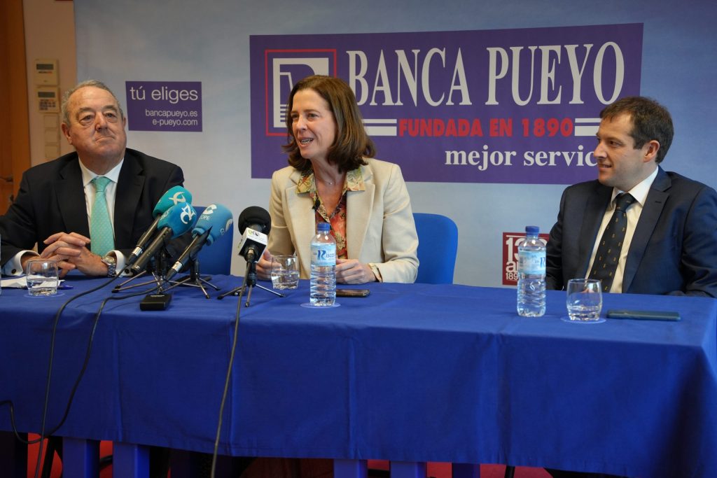 Poner en valor la labor que desde la entidad bancaria Banca Pueyo realiza en el ámbito rural, es uno de los motivos por los que la presidenta de la Asociación Española de Banca, AEB, Alejandra Kindelán ha visitado la entidad este martes 24 de enero. Una entidad afirma “que me ha impresionado ya que con más de 130 años de experiencia y con todos los acontecimientos históricos que han pasado, sigue creciendo, abriendo oficinas, ayudando a los clientes, conociéndolos, sabiendo sus necesidades e incluso os adelantáis a sus problemas”.