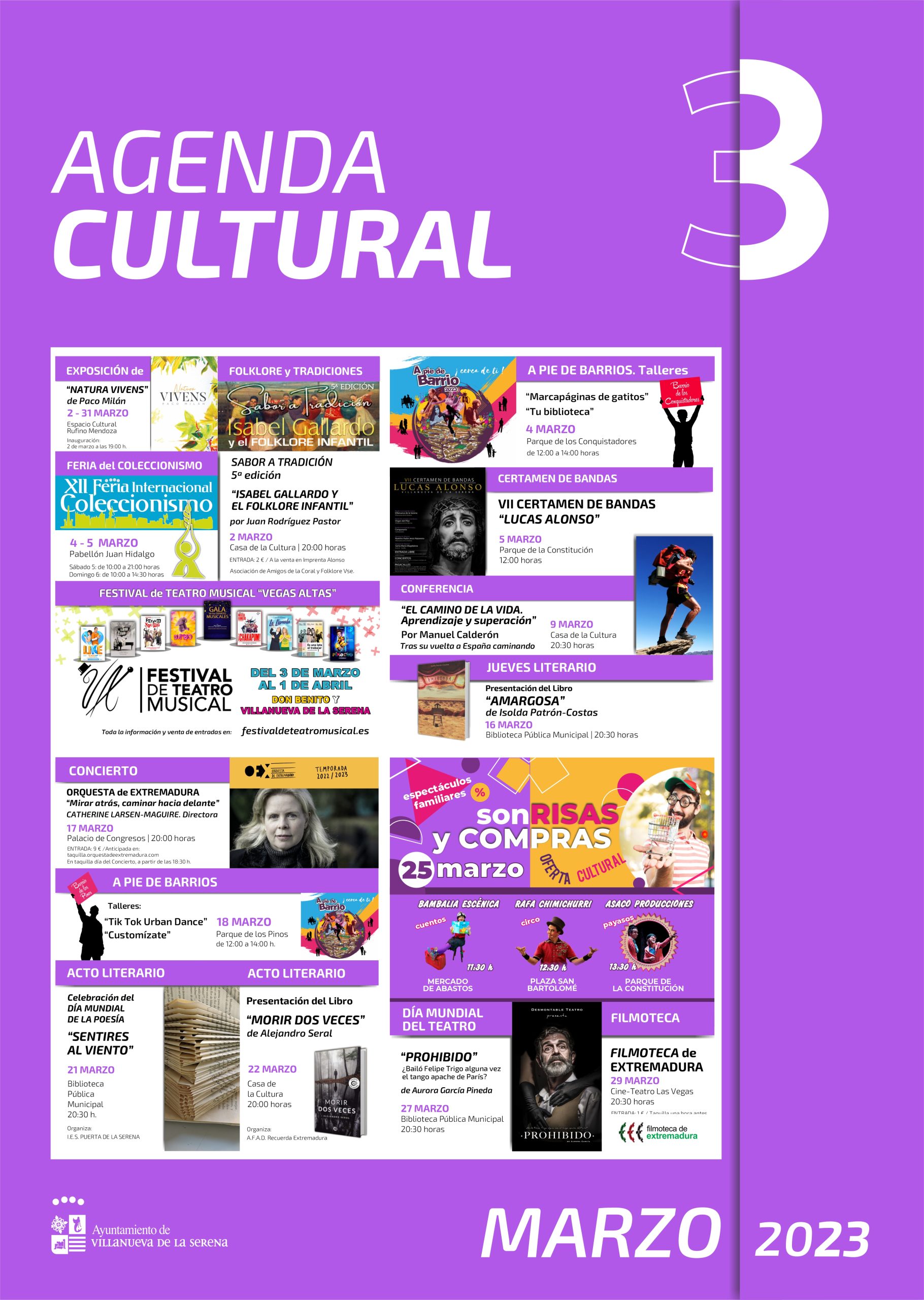 Los alumnos del IES Puerta Serena, celebrarán en la biblioteca Felipe Trigo, el 21 de marzo a las 20:30 horas el Día Mundial de la Poesía. Por otro lado, el día 27 se celebra el Día Mundial del Teatro por lo que también en la biblioteca, a partir de las 20:30 horas se llevará a cabo una dramatización por parte de la compañía villanovense Desmontable Teatro.