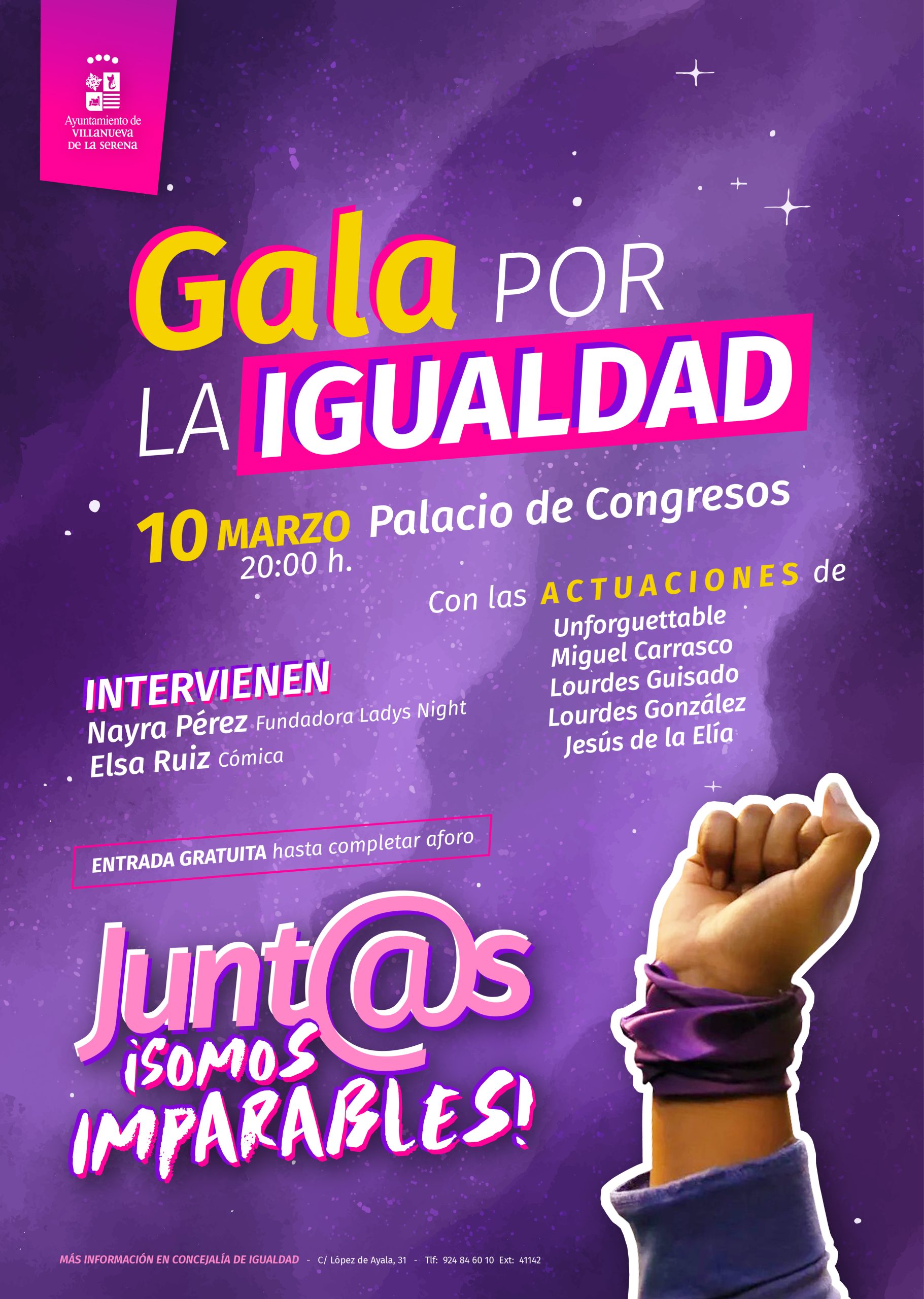 Este año, además, se ha organizado una gala por la igualdad. Tendrá lugar el próximo viernes 10, a las 20 horas, en el palacio de congresos y con entrada gratuita. Una gala que contará con las actuaciones de Jesús de la Elia, Nayara Pérez, Elsa Ruiz, Lourdes Guisado, Lourdes González, así como Miguel Carrasco y el grupo Unforgettable del dúo Chema y Cristina.