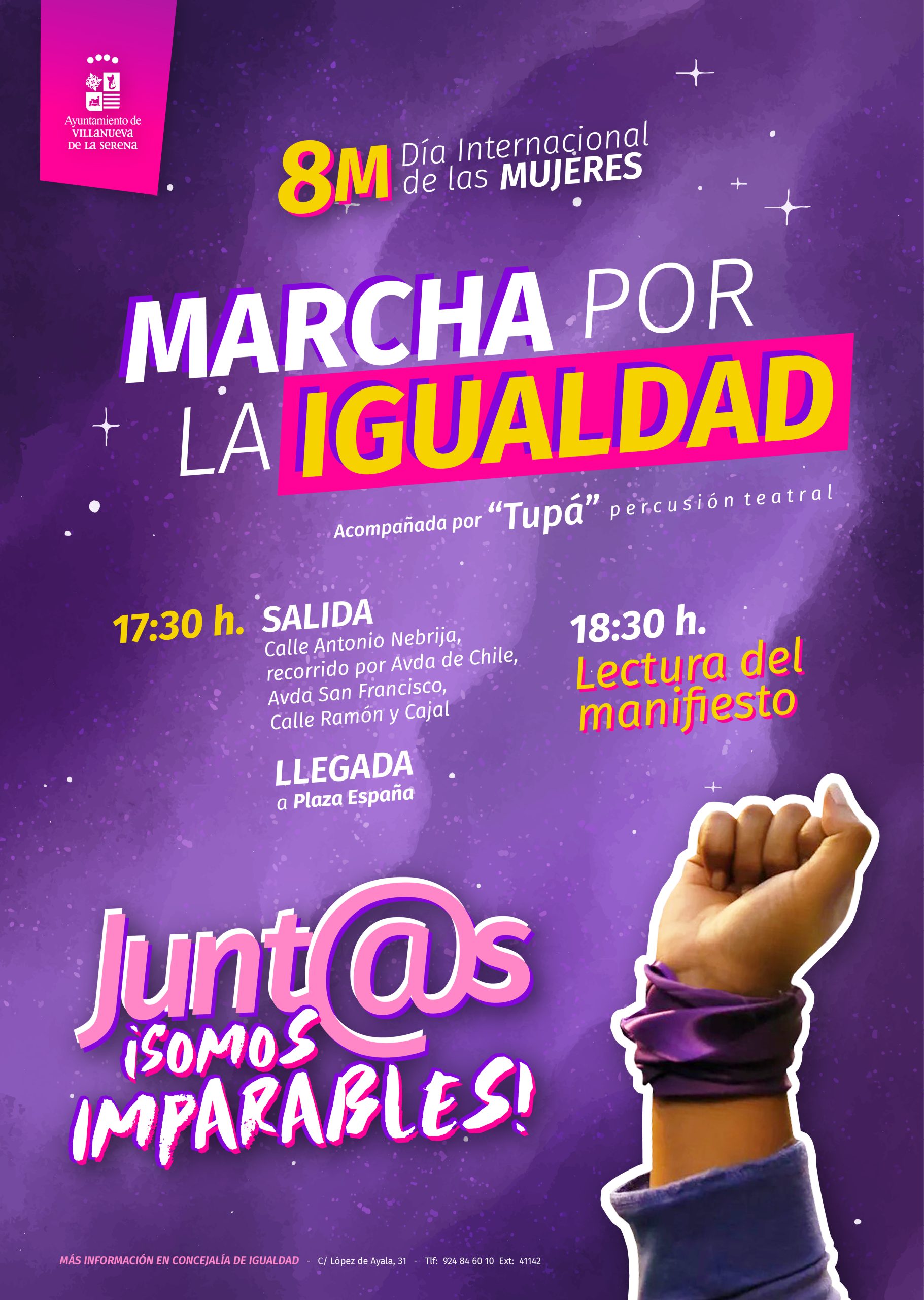 Este miércoles 8 de marzo se celebran los actos centrales con motivo de la conmemoración del Día Internacional de la Mujer, aunque a lo largo de toda la semana se están desarrollando actividades. Una marcha, con salida a las 17:30 horas de la calle Antonio de Nebrija y que recorrerá la avenida de Chile, avenida San Francisco, Ramón y Cajal, y plaza de España, donde tres mujeres leerán un manifiesto.
