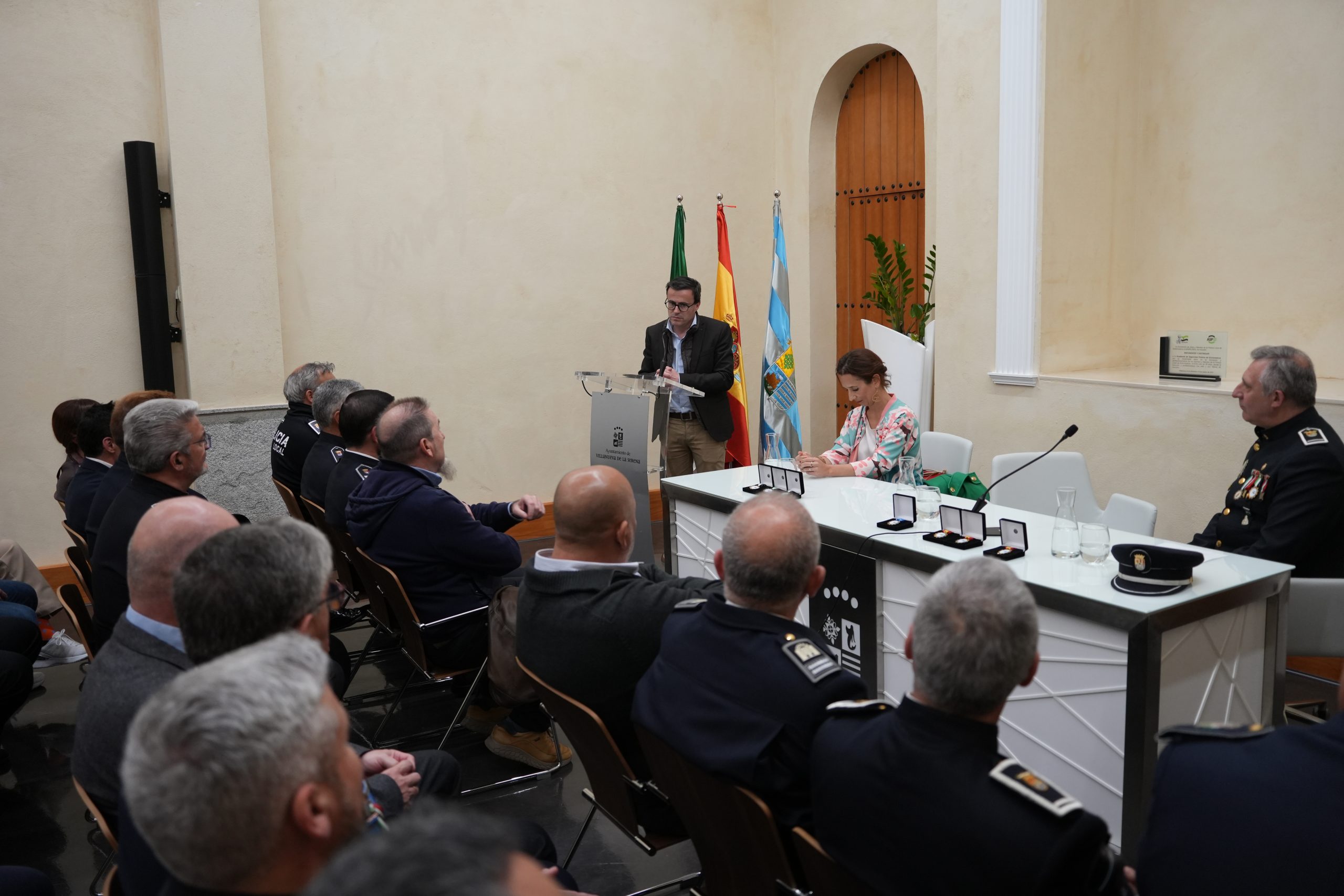 Fueron siente los galardonados entre los que se encuentran Javier Monroy, coordinador de la academia de seguridad pública de Extremadura (Aspex) y Javier Mallén Pascual, jefe de servicio de dicha academia o Raul Díaz, subinspector de la Policía Local de Villanueva.