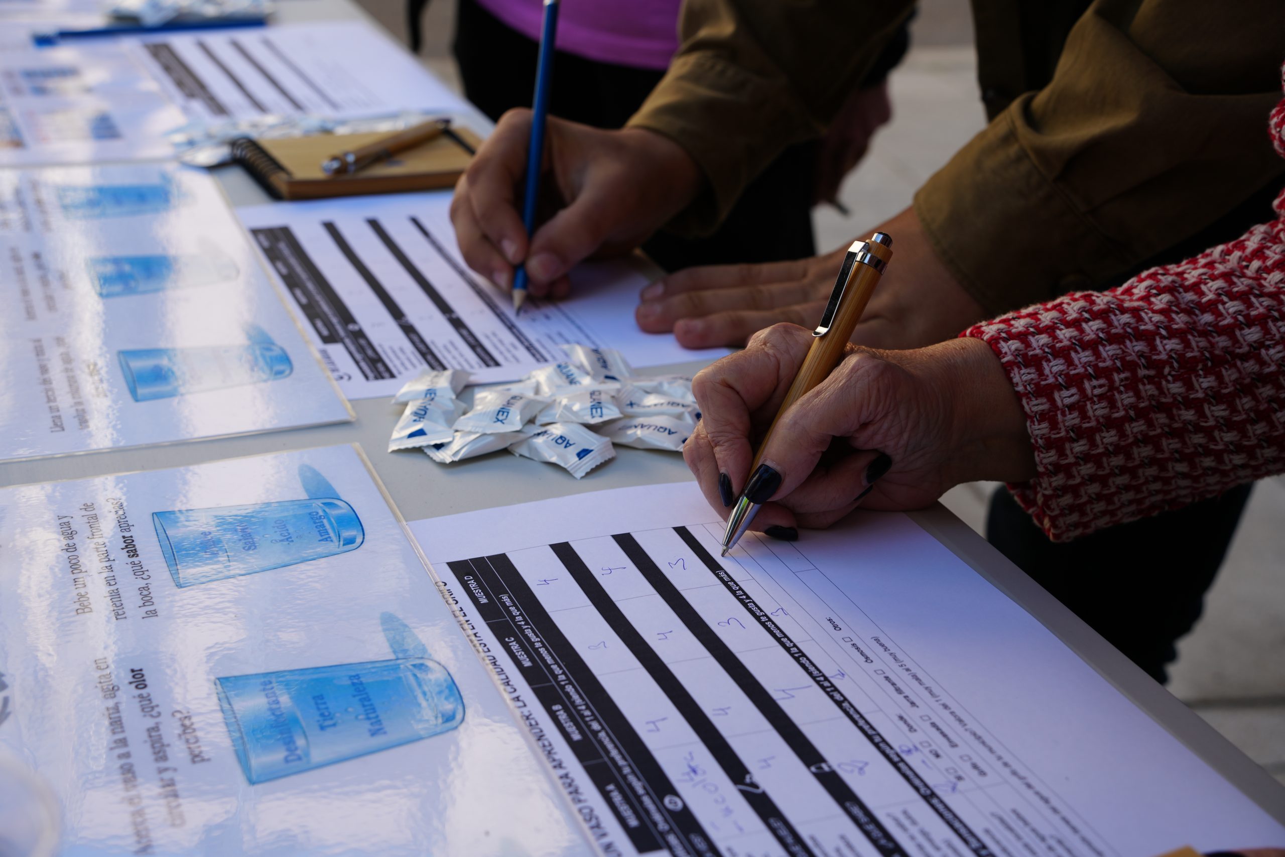 En esta cata los ciudadanos que han participado, han podido catar cuatro tipos de aguas diferentes, concretamente dos embotelladas, de mineralización débil y fuerte, así como dos aguas del grifo procedentes de Villanueva de la Serena y de otra localidad. Los participantes han tenido que rellenar un formulario tras haber catado el agua a través del gusto, el olfato y la vista.