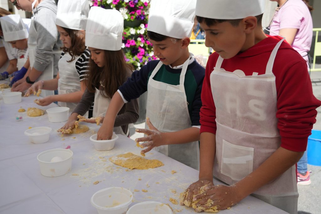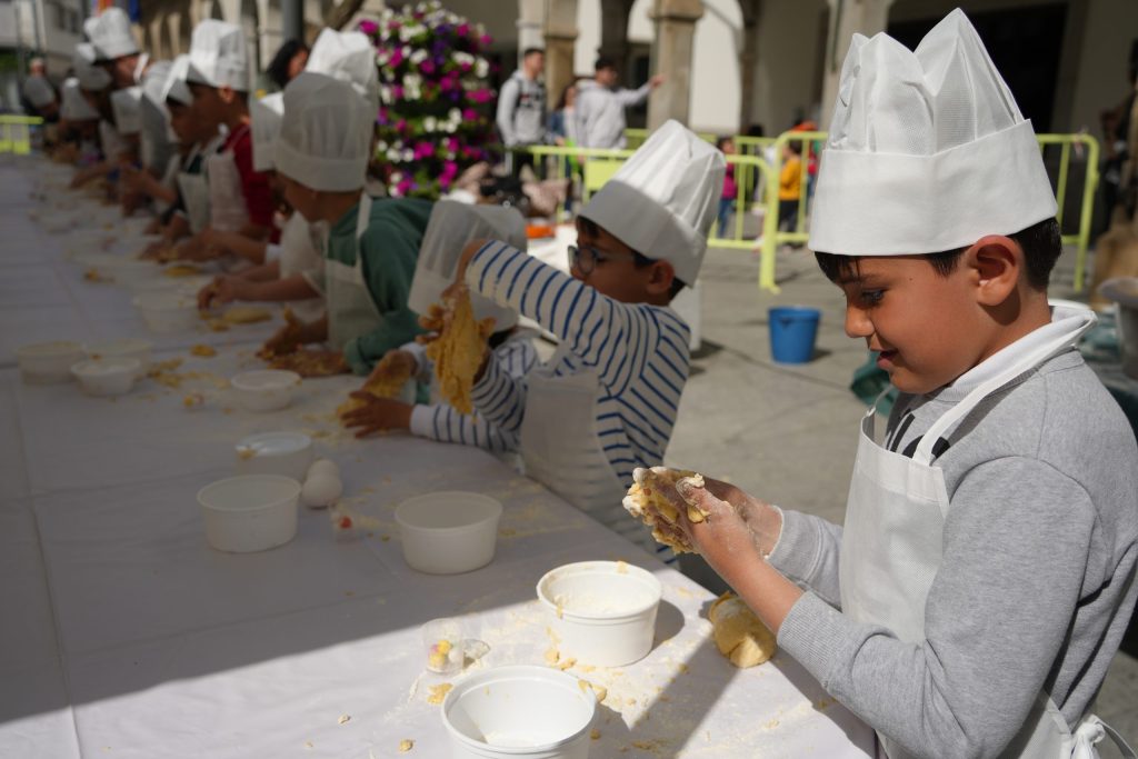 200 pequeños disfrutan este martes 4 de abril del taller “Haz tu propio hornazo” enmarcado dentro de las actividades de Semana Santa que organiza la concejalía de Turismo. Se trata de un taller que tiene como objetivo transmitir las tradiciones gastronómicas de nuestra ciudad, en este caso de un dulce típico de la época además de ofrecer una alternativa de ocio para su tiempo libre en las vacaciones de Semana Santa.
