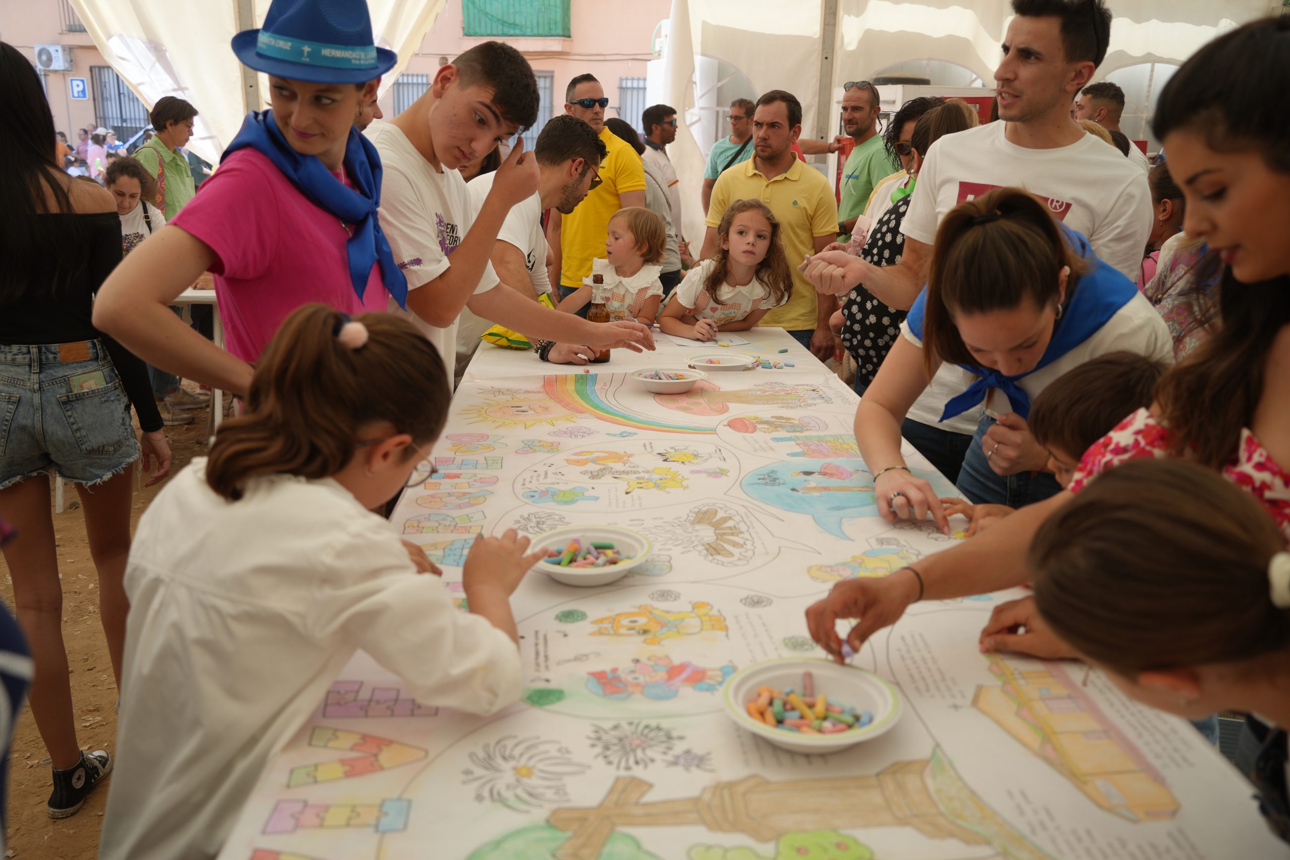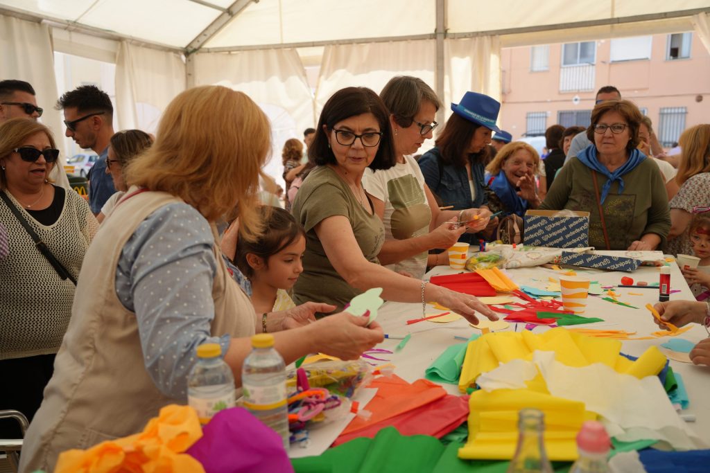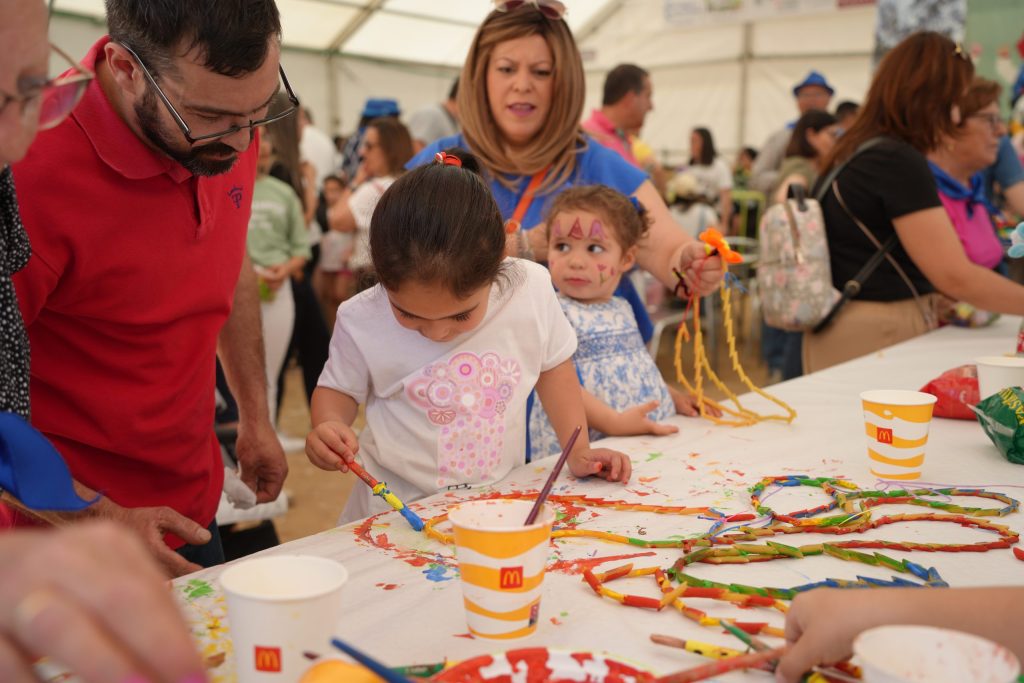 Las fiestas de la Santa Cruz vuelven a congregar a multitud de villanovenses con las diferentes actividades que se han desarrollado durante estos días. Concretamente, el lunes 1 de mayo, se celebró una nueva edición de “Vive tu parque” donde los más pequeños pudieron participar en distintos talleres de arcilla, maquillajes, bisutería con pasta, pinturas, pintar un mural donde se puso en valor las enseñanzas de las tradiciones de abuelos a nietos, manualidades entre otras, todo ello en la carpa ubicada en la calle La Barca.
