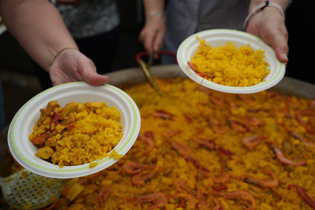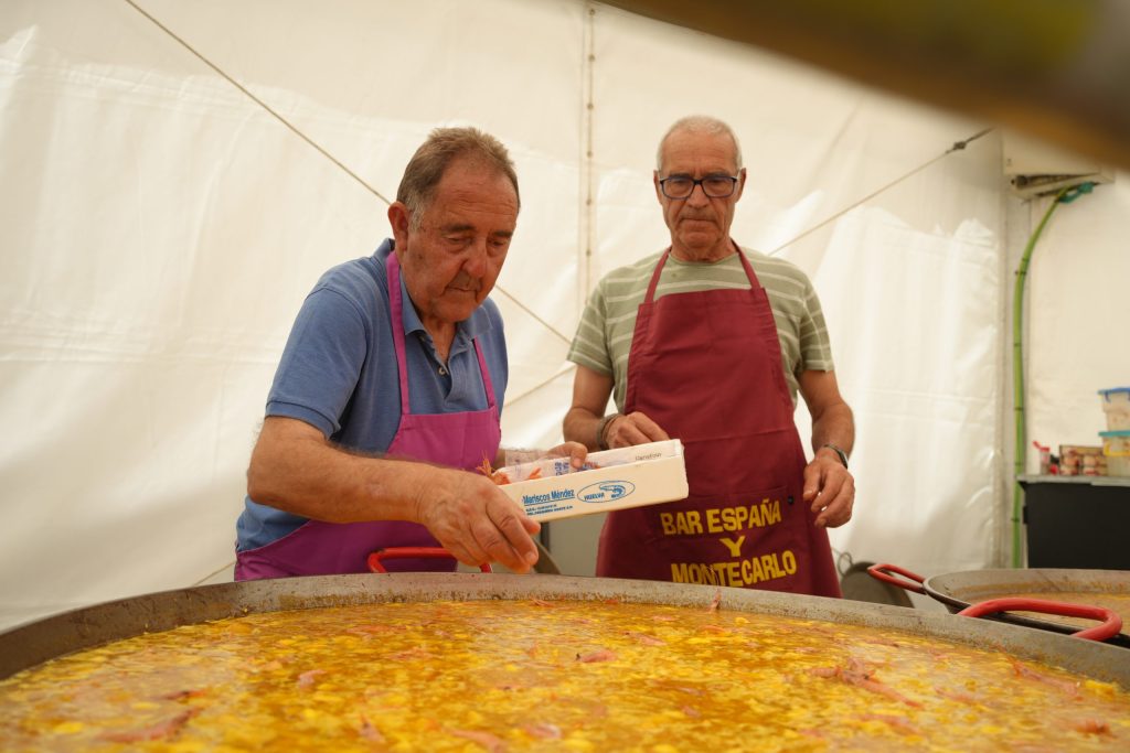 Posteriormente, dos cocineros locales volvieron a elaborar un plato que se ha convertido en tradicional de estas fiestas, como es la paella. Fueron un total de cinco las paellas que se degustaron y que abarcaban alrededor de 300 raciones.