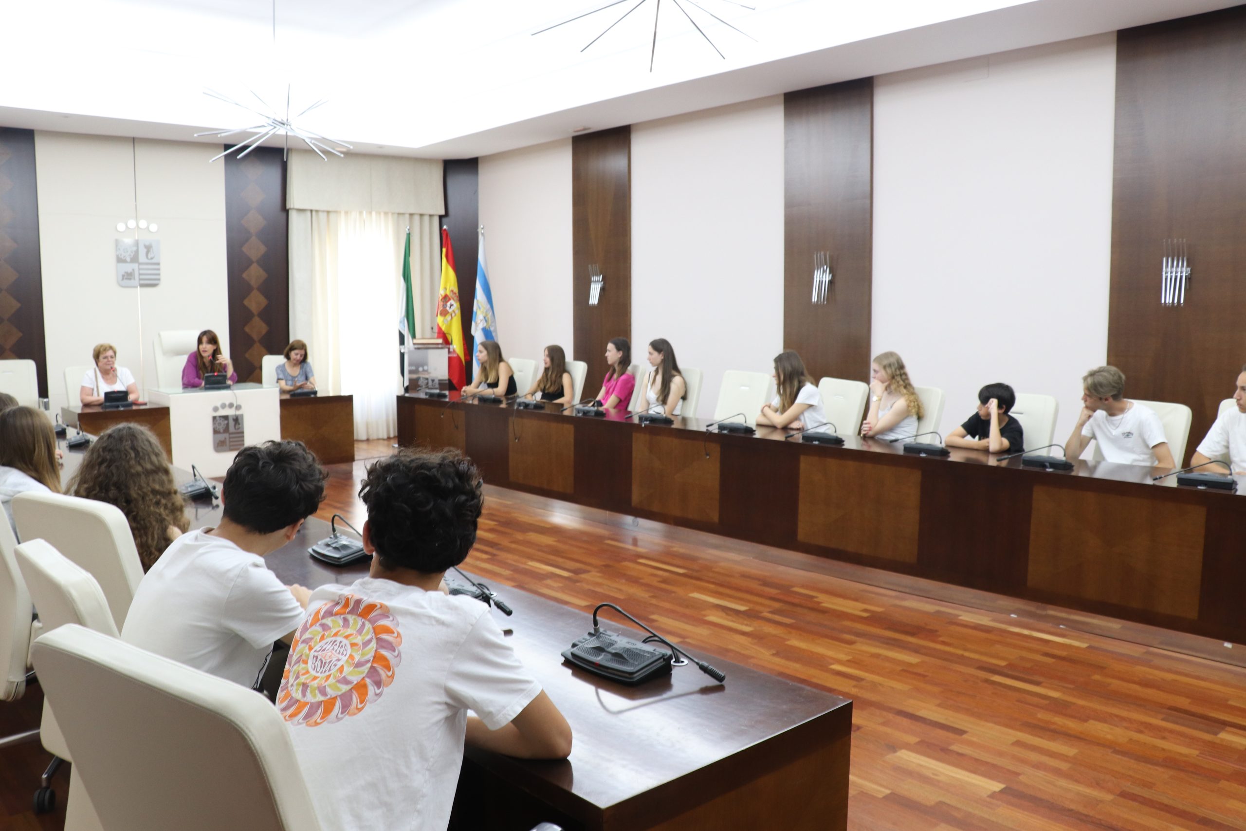 Durante su estancia han pasado unos minutos conociendo el Ayuntamiento y el salón de Plenos donde han sido recibidos por la concejala de Educación, María Lozano.
