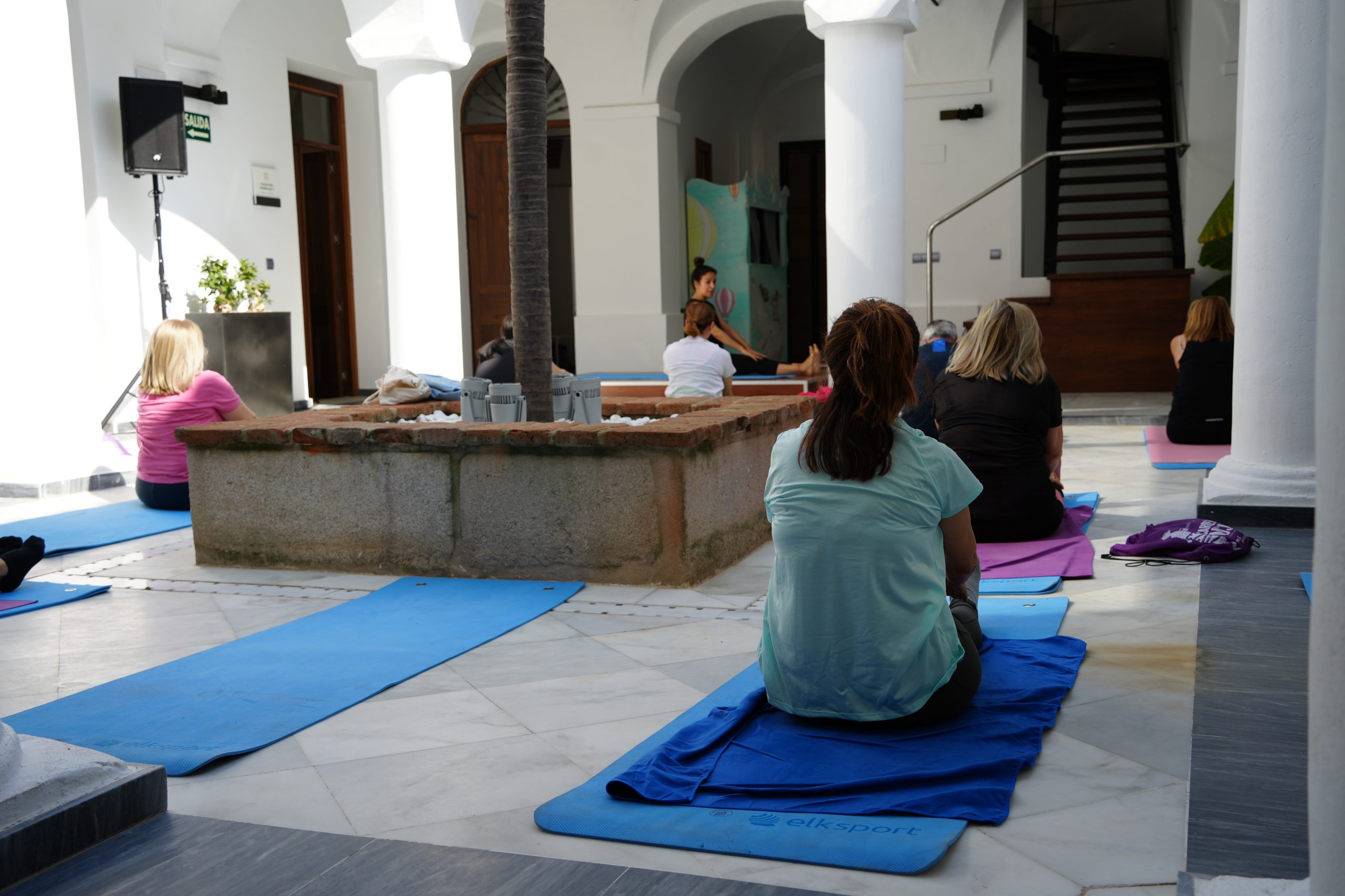 Esta mañana ha sido el turno de las clases de yoga y pilates y los alumnos del IES Puerta de la Serena de bachillerato y alumnos del colegio San José.