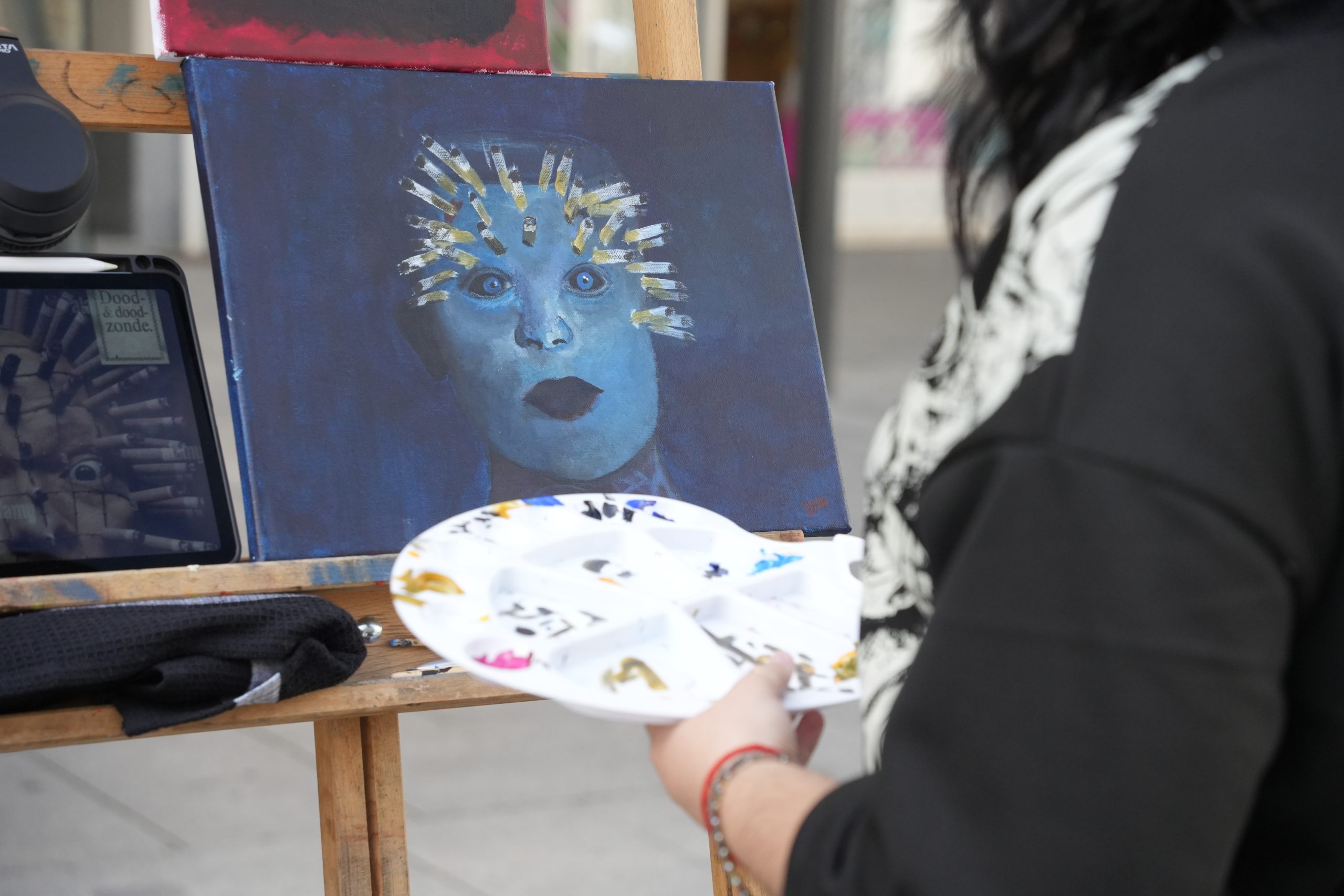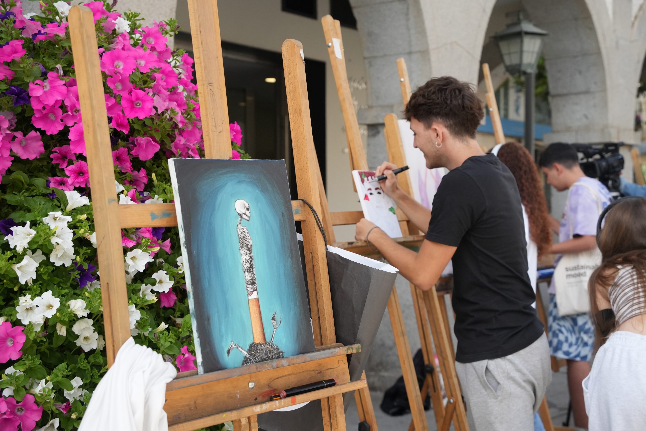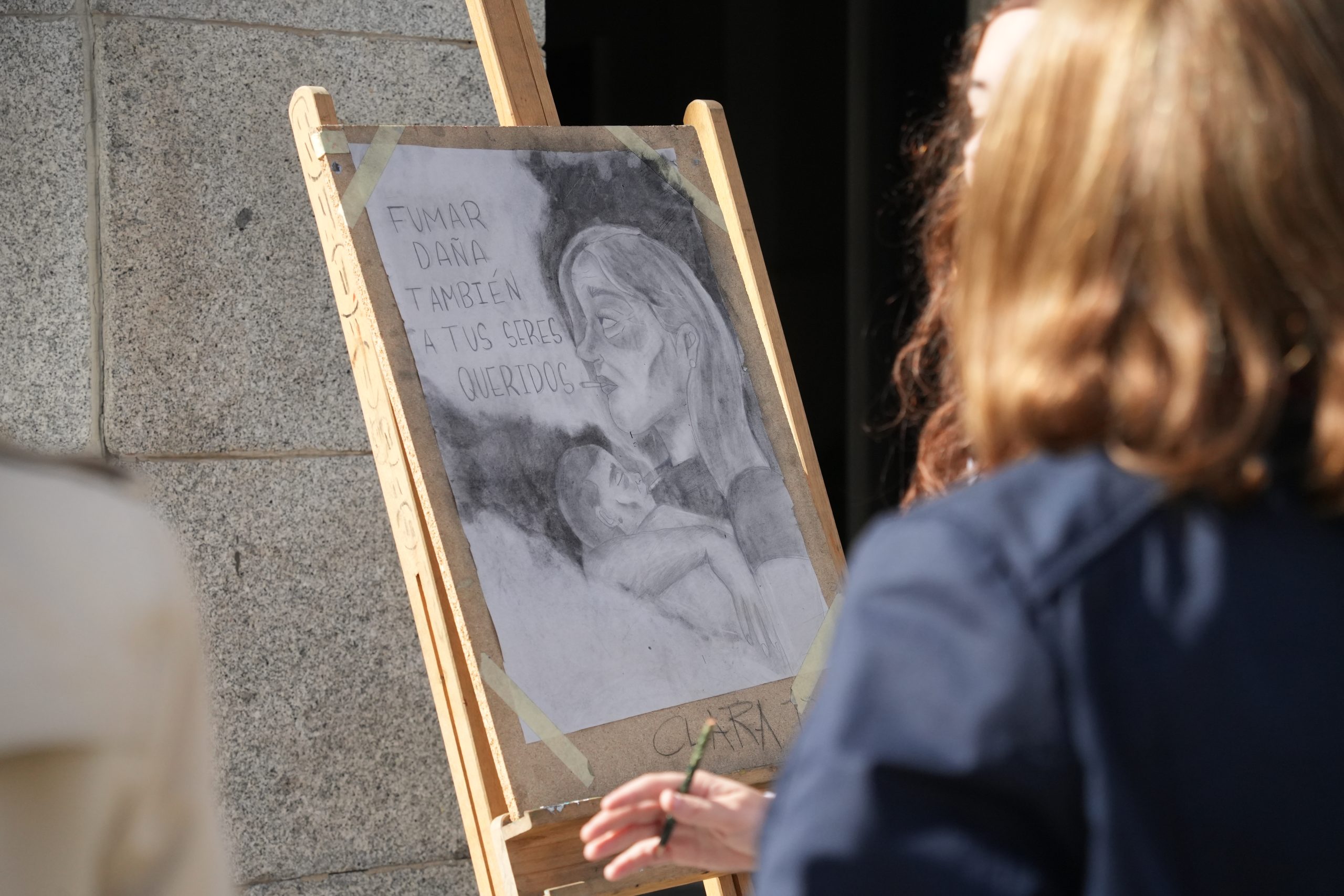 Los pinceles de los alumnos del IES Puerta de la Serena han salido hoy a la calle para conmemorar el Día Mundial sin Tabaco y lo que significa esta adicción para ellos.