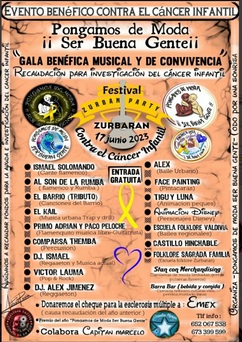 La asociación “Pongamos de moda ser buena gente” llevará a cabo el próximo 17 de junio una gala benéfica cuya recaudación irá destinada en esta ocasión, para la investigación del cáncer infantil. Una gala según explica Sergio González, miembro de la asociación, que comenzará en las inmediaciones de la Casa de la Cultura de Zurbarán a partir de las 11 horas con actividades para niños y niñas, que continuará a partir de las 14 horas con una convivencia entre los participantes donde podrán disfrutar de una batucada, música en directo, etc. Además, también se hará entrega del cheque de la primera gala celebrada que se desarrolló el pasado año y que se destina a la Asociación de Esclerosis Múltiple de Extremadura.