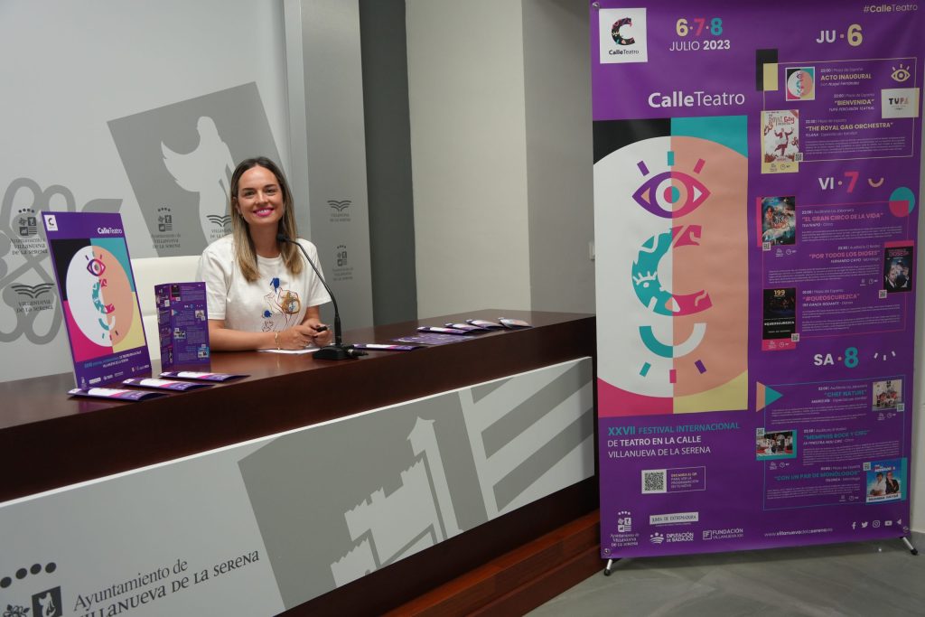 Del 6 al 8 de julio, se celebrará la vigésimo séptima edición del Festival de Teatro en la Calle, Calleteatro. Un Festival que a lo largo de tres días ofrecerá a los ciudadanos distintas propuestas teatrales en diferentes ubicaciones de la ciudad, así lo afirma Ana Mansanet, concejala de Cultura quien subraya que “a través de las artes escénicas, se acercará la cultura a todas y a todos, sacándolas de los teatros y llevándolas a las calles y plazas de Villanueva de la Serena”. Un festival, subraya, que cuenta con compañías de renombre del panorama no solo local y regional sino también nacional, que pone en valor “el talento de nuestra tierra y que sitúa a Villanueva de la Serena en el mejor de los marcos como ciudad que apuesta y cuida de la cultura”.