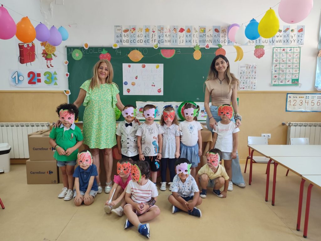 La actividad “Los Héroes de la Fruta” comenzaron el pasado mes de mayo y tiene como objetivo fomentar el consumo de fruta entre los escolares, intentando alcanzar la recomendación diaria de 5 raciones de frutas y verduras. Para conseguirlo, las aulas participantes han tenido un cuadrante en el que debían poner el nombre de todos los alumnos con el fin de poder contabilizar el consumo de fruta.