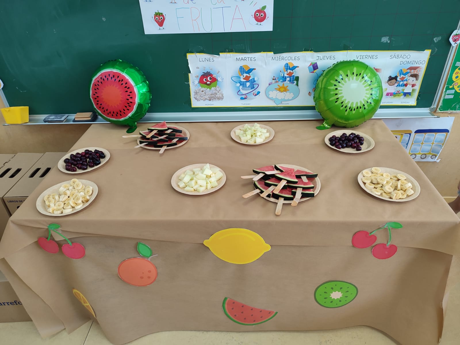 La actividad “Los Héroes de la Fruta” comenzaron el pasado mes de mayo y tiene como objetivo fomentar el consumo de fruta entre los escolares, intentando alcanzar la recomendación diaria de 5 raciones de frutas y verduras. Para conseguirlo, las aulas participantes han tenido un cuadrante en el que debían poner el nombre de todos los alumnos con el fin de poder contabilizar el consumo de fruta.