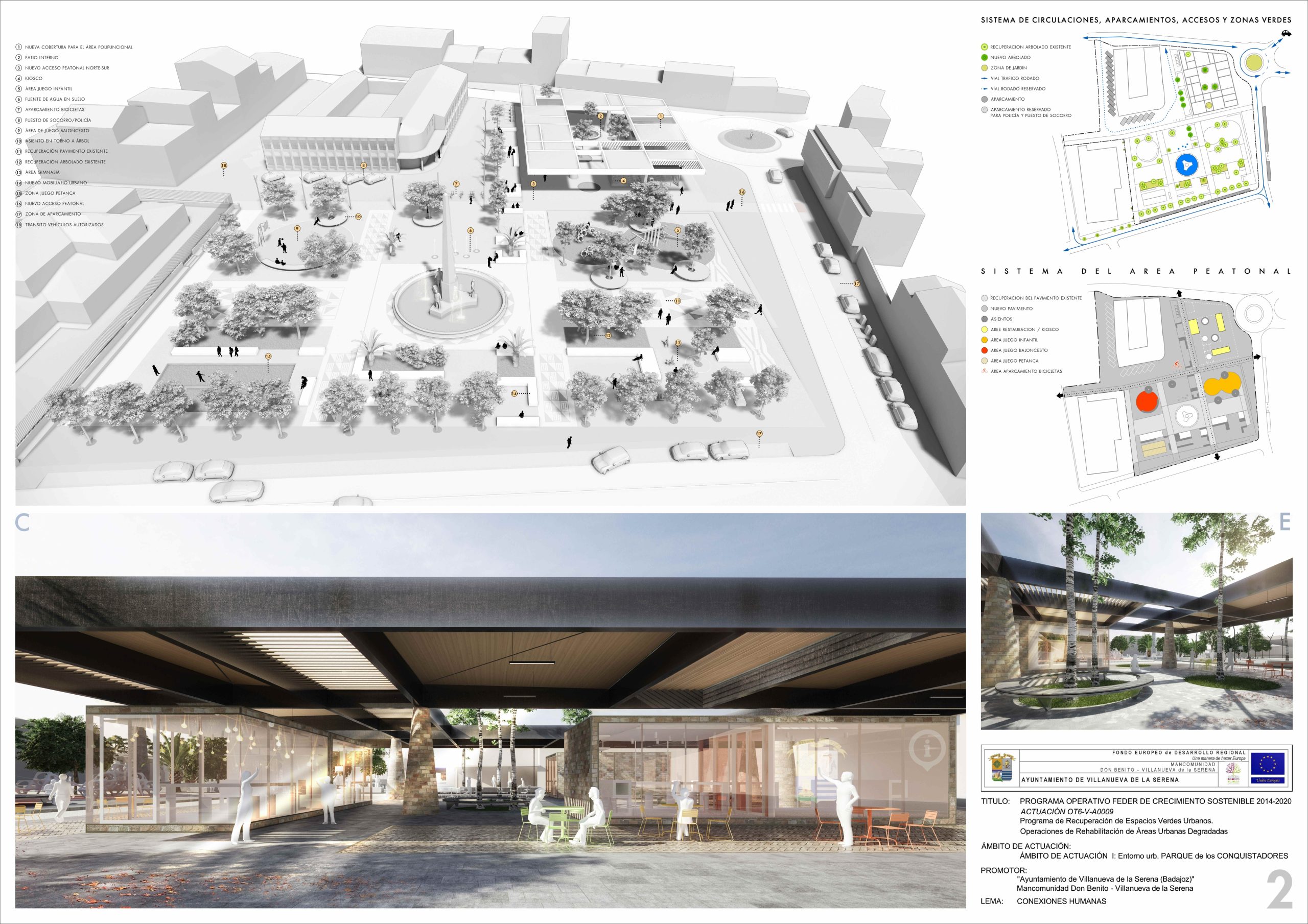 Este lunes 26 han comenzado las obras de remodelación integral del entorno de la plaza de los Conquistadores. Un proyecto que materializará “Conexiones Humanas” del estudio A1j Arquitectos, integrado por José Miguel Iglesias Egido y Luis García Ruiz. Un proyecto que fue el ganador del concurso que ideas que en su día se convocó por parte del Ayuntamiento para realizar esta actuación; así como la que ya se lleva a cabo en el entorno de Cruz del Río.