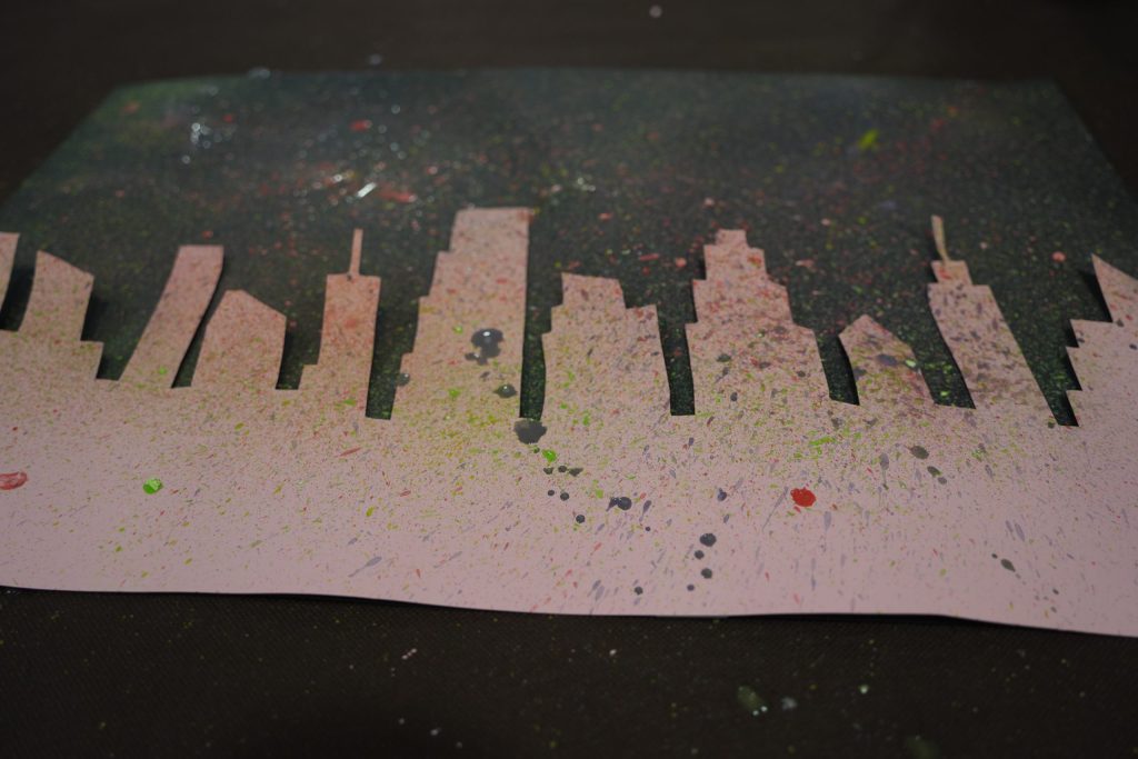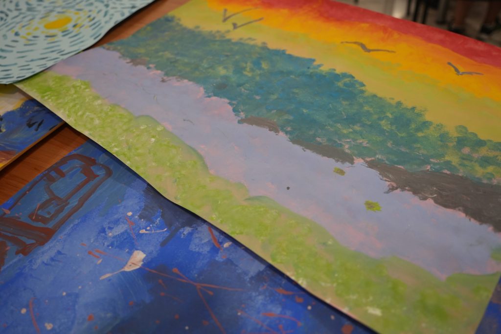 Se trata de un taller donde los participantes se están divirtiendo mientras realizan murales, globoflexia, estarcido, dibujos o estampaciones.