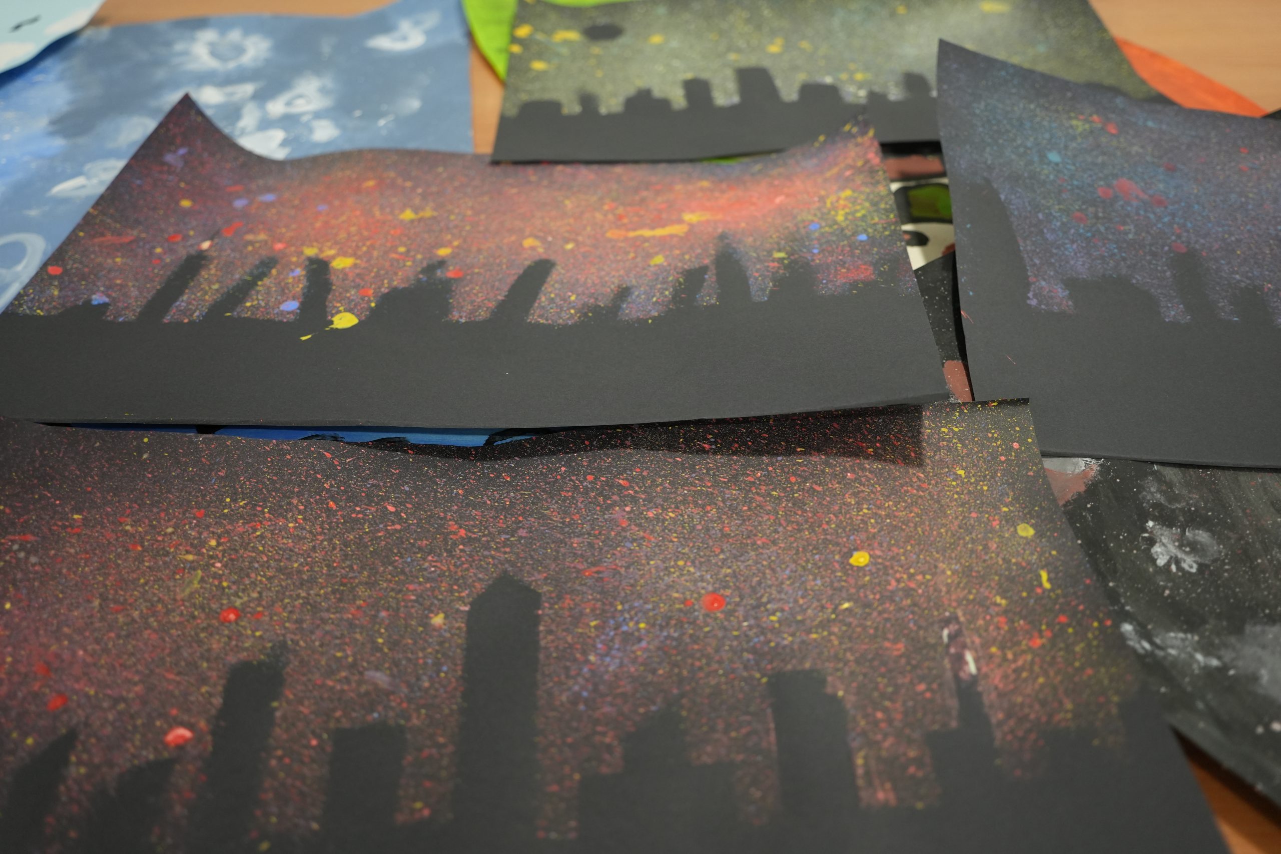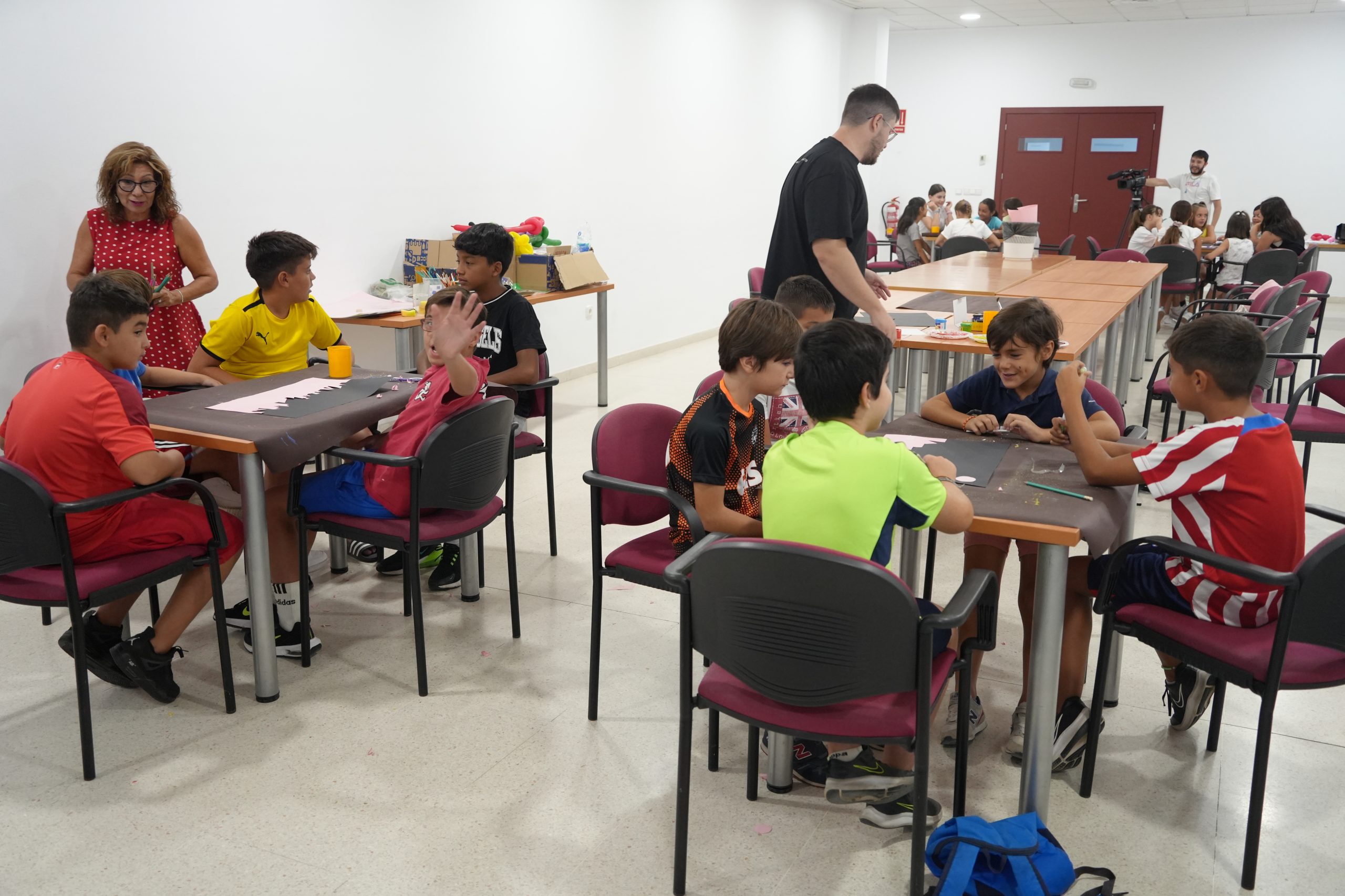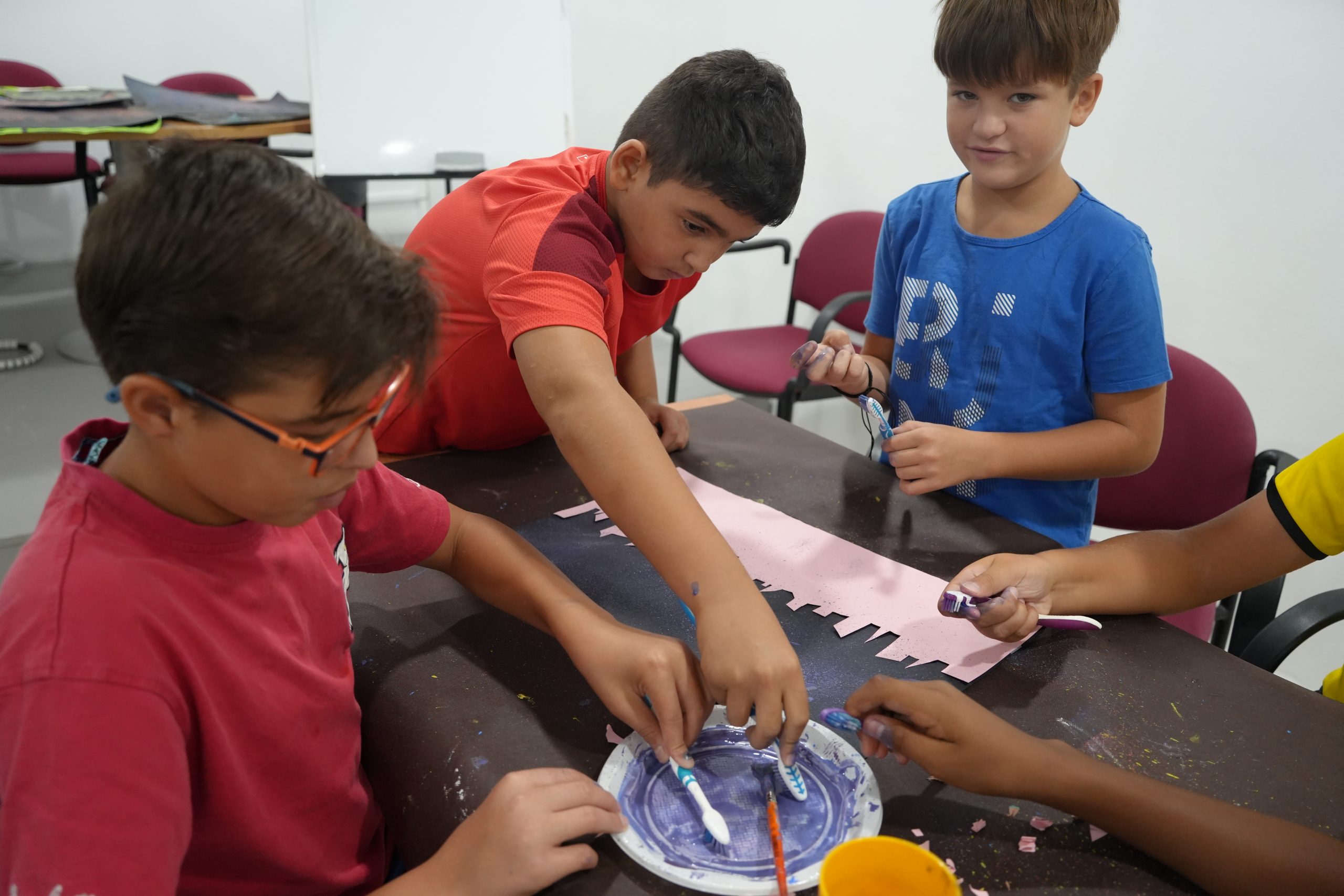 Se trata de un taller donde los participantes se están divirtiendo mientras realizan murales, globoflexia, estarcido, dibujos o estampaciones.