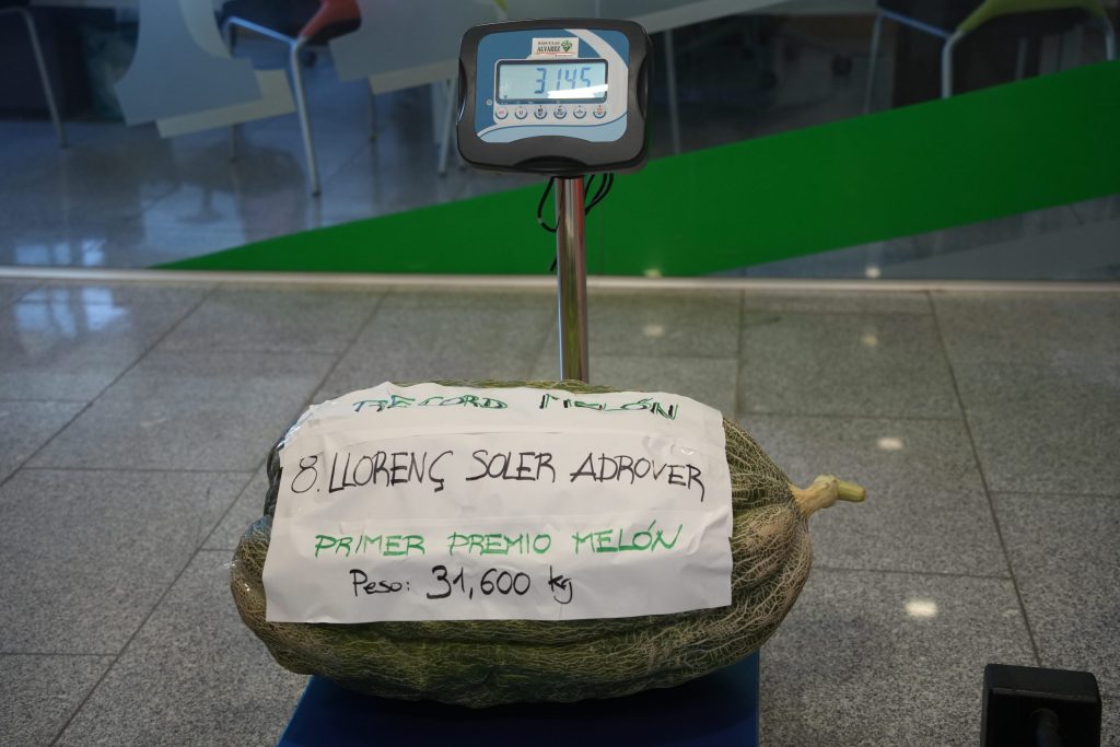 Además del primer premio en este concurso, Soler también ha conseguido el récord nacional en la modalidad de melón, ya que, hasta el momento, el fruto más grande pesaba 30 kilos y 500 gramos.