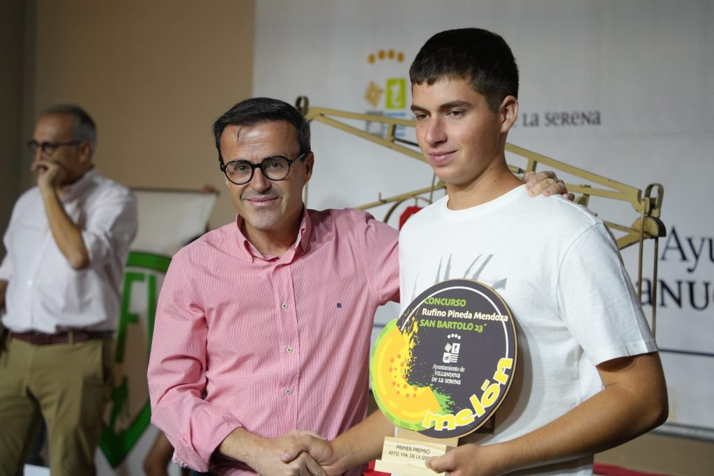 La 60 edición del tradicional concurso de sandía y melón “Rufino Pineda Mendoza” enmarcado dentro de las fiestas de San Bartolomé 2023, deja con un buen sabor de boca a todos ya que se presentaron un total de 19 frutos, concretamente 8 sandías y 11 melones procedentes no solo de Villanueva de la Serena sino también, de Don Benito, Guareña y Mallorca. Precisamente desde Mallorca y de la mano de Llorenç Soler, presentó un melón que ha conseguido, además del primer premio, el récord nacional con un fruto que pesó 31 kilos y 600 gramos.