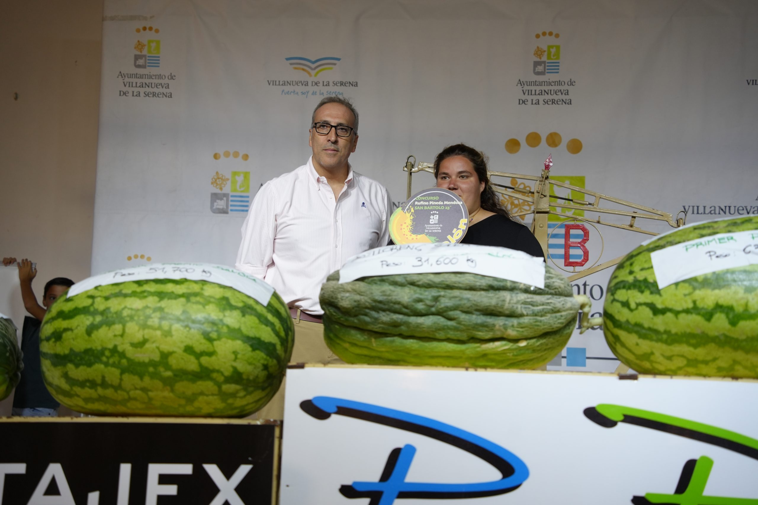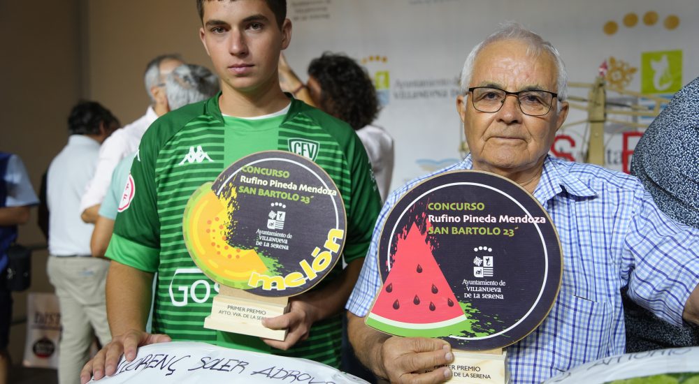 La 60 edición del tradicional concurso de sandía y melón “Rufino Pineda Mendoza” enmarcado dentro de las fiestas de San Bartolomé 2023, deja con un buen sabor de boca a todos ya que se presentaron un total de 19 frutos, concretamente 8 sandías y 11 melones procedentes no solo de Villanueva de la Serena sino también, de Don Benito, Guareña y Mallorca. Precisamente desde Mallorca y de la mano de Llorenç Soler, presentó un melón que ha conseguido, además del primer premio, el récord nacional con un fruto que pesó 31 kilos y 600 gramos.
