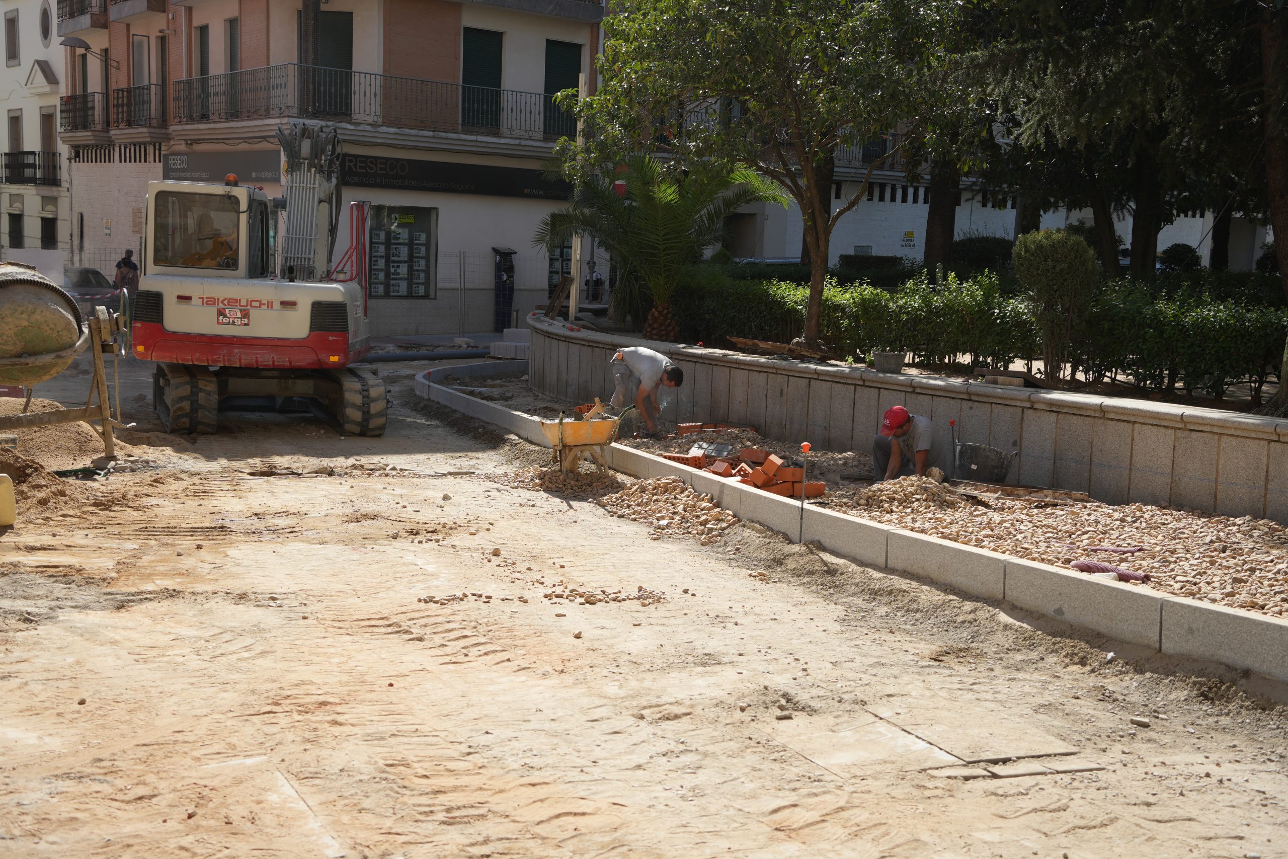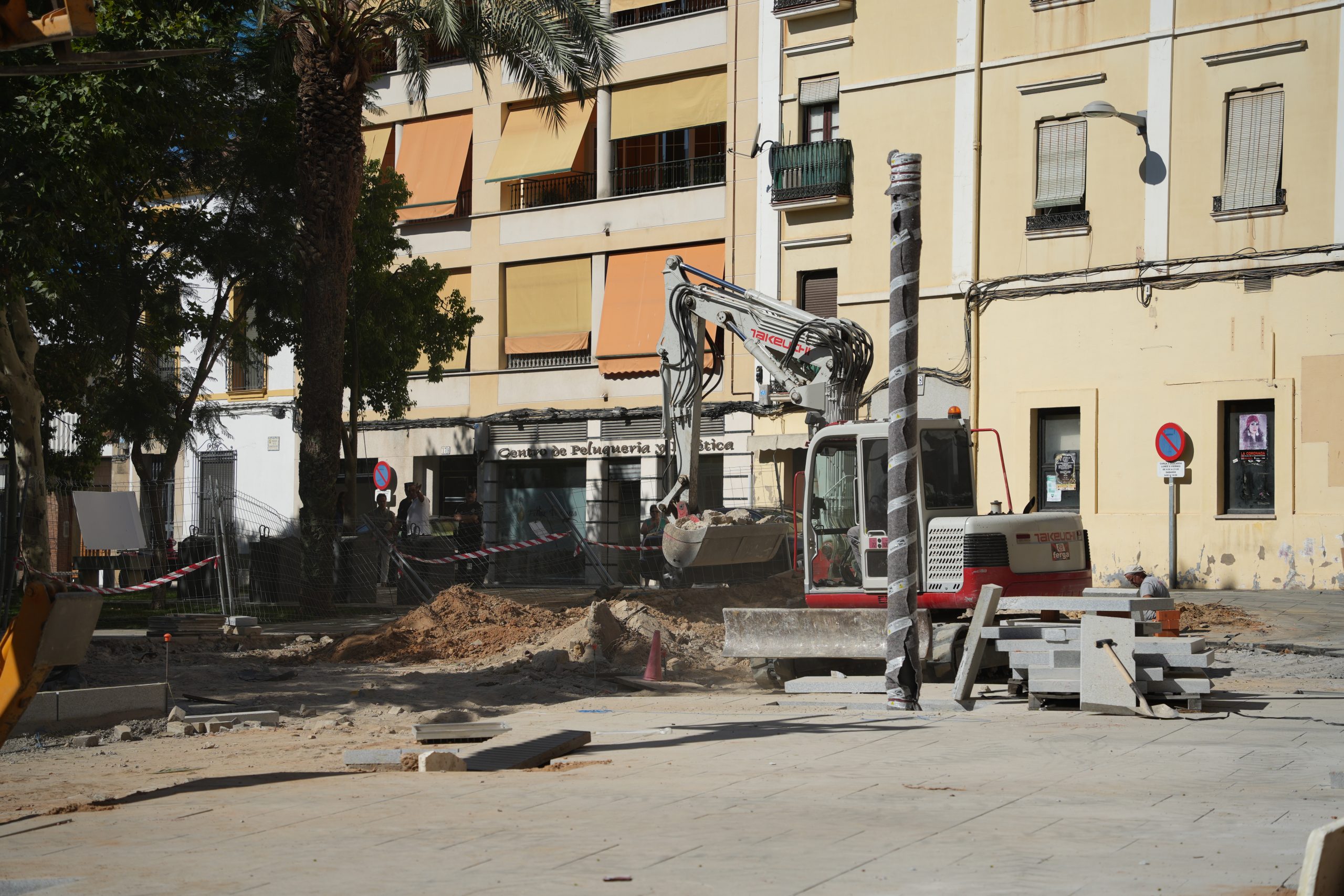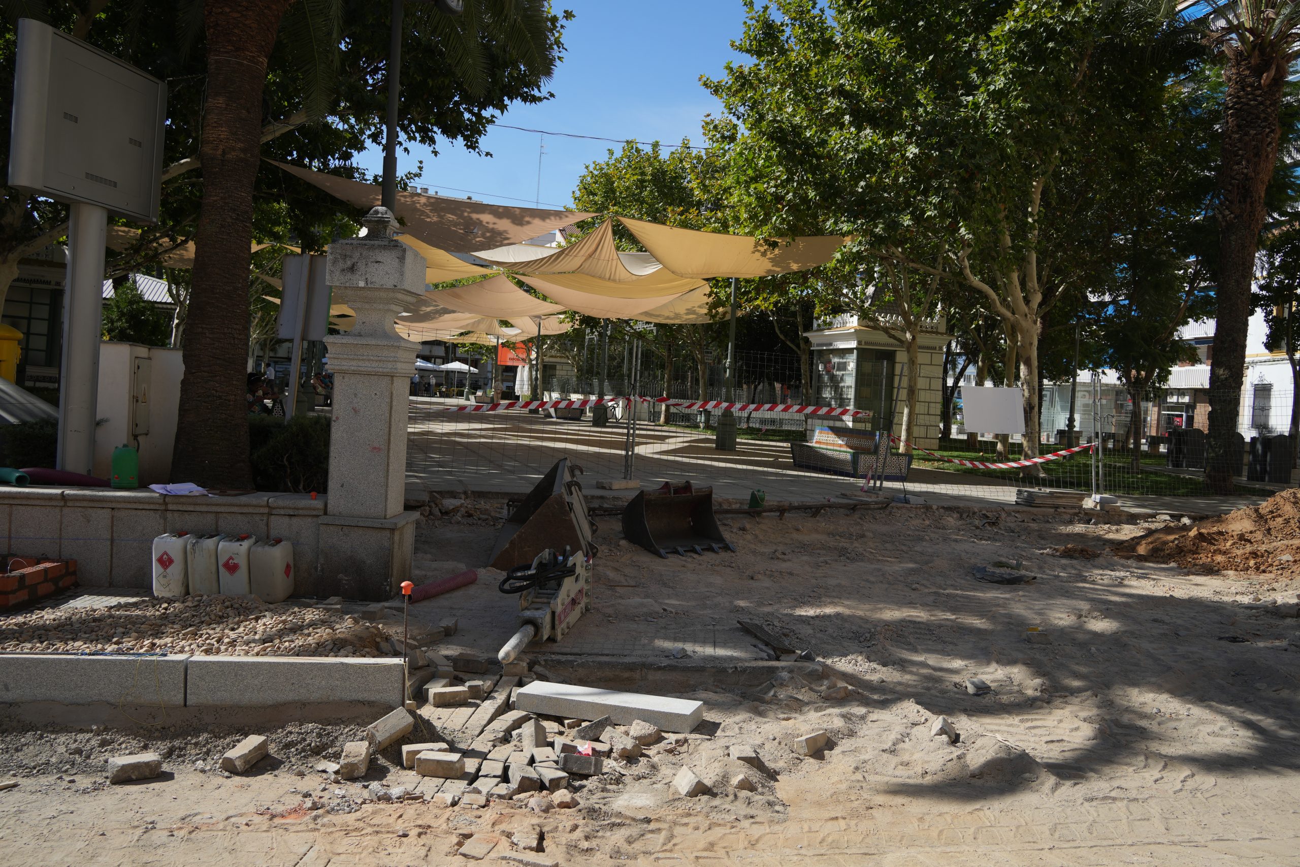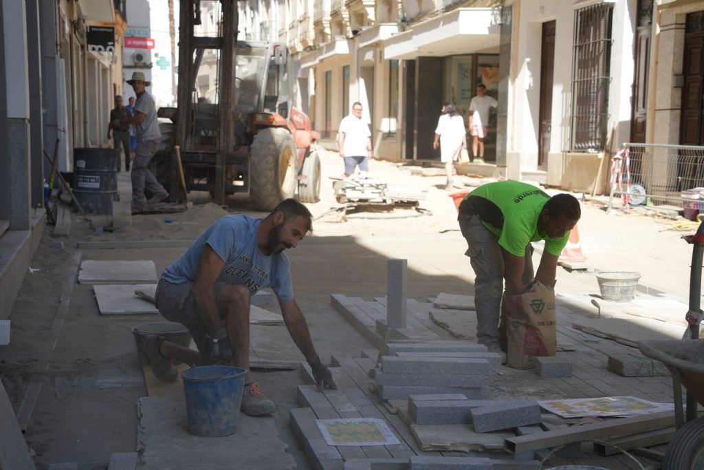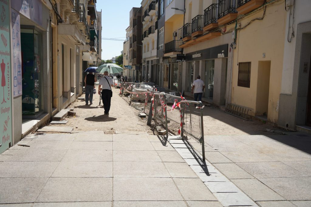 Continúan a buen ritmo las obras de remodelación de la calle Ramón y Cajal y el entorno del parque de la Constitución. Una actuación que permitirá conseguir una nueva imagen de todo el entorno, concretamente en la calle Ramón y Cajal se contempla una nueva solería en la que se combinará, granito gris quintana con negro, y con mármol blanco que busca romper la monotonía; además de contar con árboles de hoja caduca que den sombra a la calle en verano, bancos y otros elementos de mobiliario urbano. Se mejorará, además, la potencia de la iluminación de la calle y se suprime el tendido eléctrico aéreo que cruza la calle, y el cableado existente actualmente en la zona de la parroquia desaparecerá.