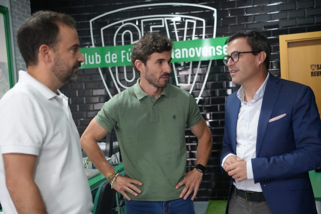 El alcalde Miguel Ángel Gallardo recoge un año más con ilusión, el carnet de socio del C.F. Villanovense de cara a la próxima temporada 2023-2024, en la nueva sede del club ubicada en la Avenida de Chile.