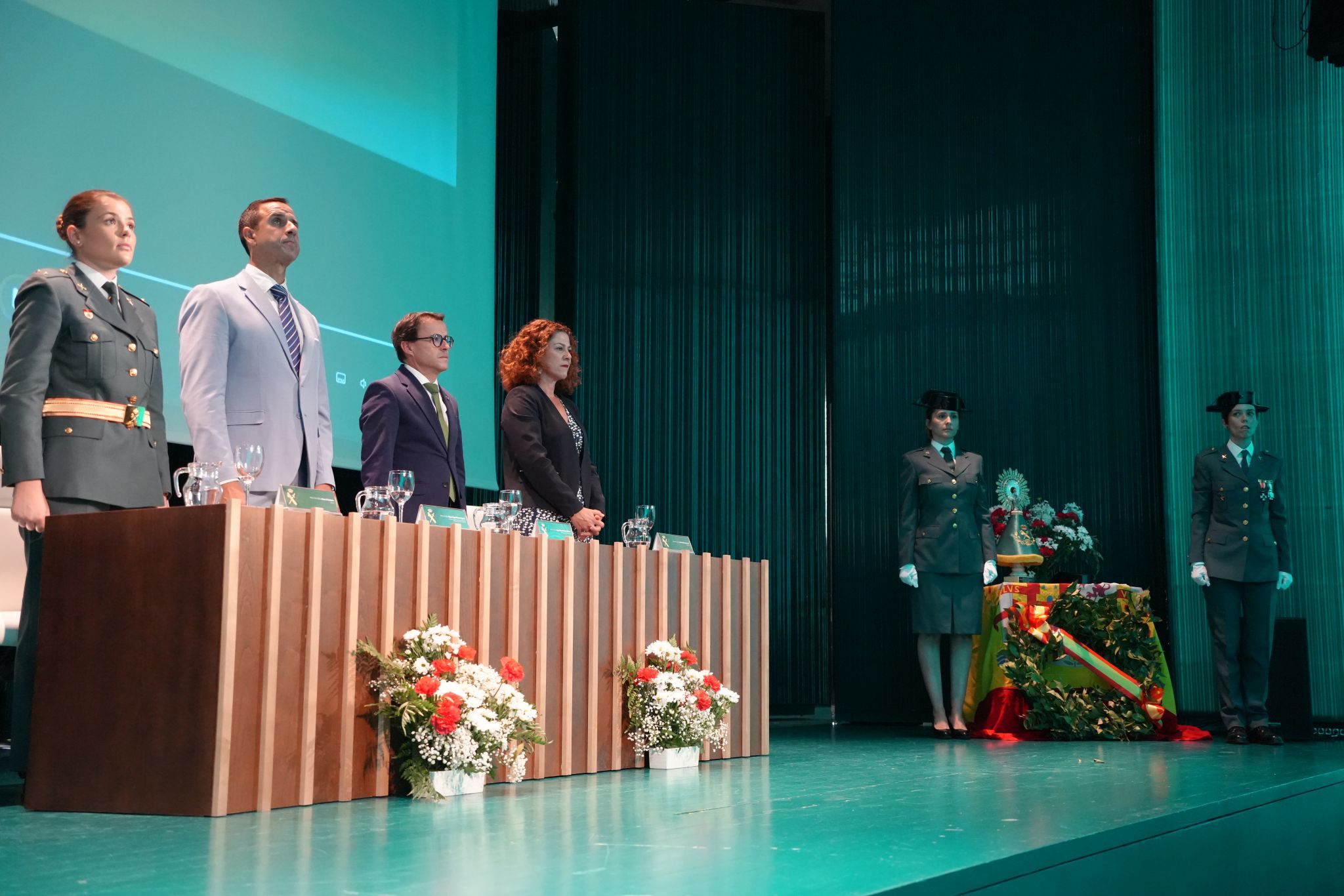 La Guardia Civil celebró su festividad este 12 de octubre y homenajeó a su patrona, Nuestra Señora del Pilar en un acto institucional en el palacio de congresos. Tras la misa y procesión de su patrona, la Guardia Civil hizo entrega de los distintos reconocimientos a agentes, condecoraciones y menciones honoríficas, al tiempo que se puso en valor el trabajo que realizan día a día además de una ofrenda floral a la Virgen del Pilar por aquellos que murieron en acto de servicio.