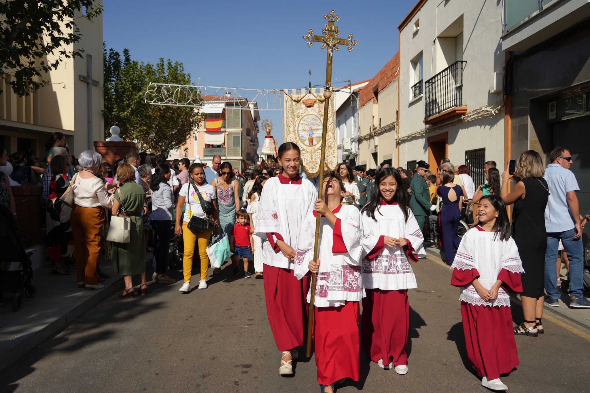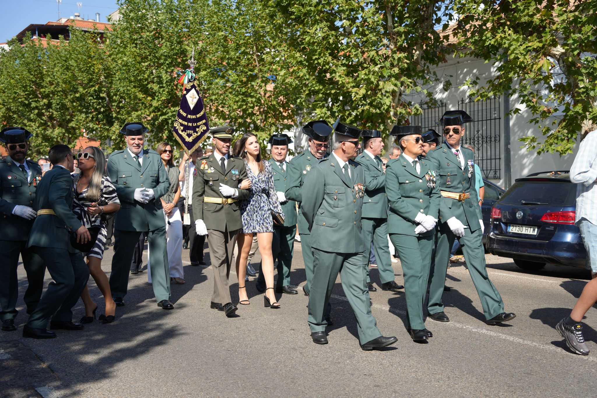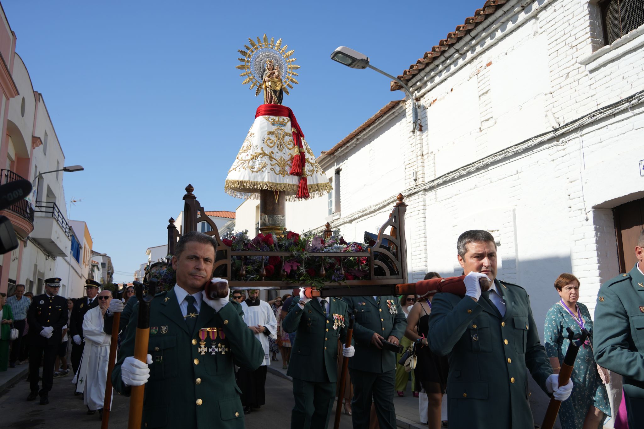 Un año más, la patrona de la Hispanidad y de la Guardia Civil, la Virgen del Pilar, salió en procesión acompañada de multitud de villanovenses el pasado 12 de octubre. Una procesión que recorrió las calles Arias Montano, Navegante Juan Morcillo, Avenida de Chile, Eloy Gonzalo y de nuevo Arias Montano para regresar a su iglesia. Unas calles, engalanadas con macetas, que la Virgen recorrió portada por los miembros de la Benemérita; además de ir acompañada de la banda de cornetas y tambores de Nuestro Padre Jesús Nazareno.
