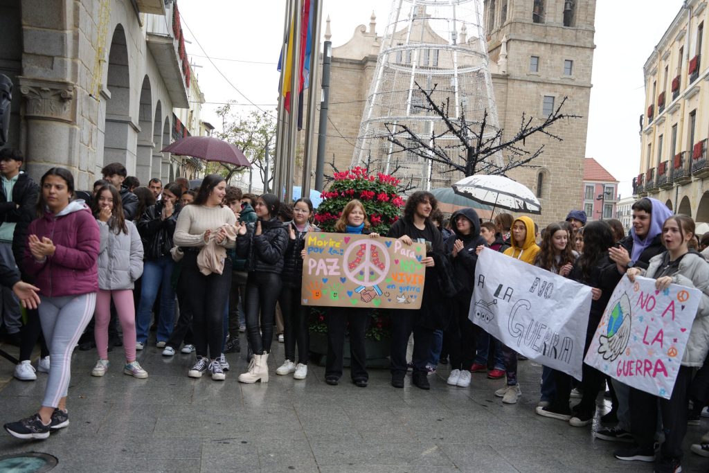 Con pancartas, los alumnos han recorrido diferentes calles desde Antonio de Nebrija pasando por la avenida de Chile, San Francisco, calle Ramón y Cajal hasta plaza de España donde se ha procedido a la lectura de un manifiesto por parte de una alumna del centro mientras una compañera interpretaba una pieza musical con el violín.