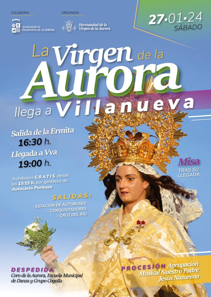 La Virgen de la Aurora regresa a la ciudad y lo hará el próximo 27 de enero, coincidiendo con el fin de semana anterior a las Candelas. El traslado de la Virgen de la Aurora desde su ermita hasta la Parroquia de Nuestra Señora de la Asunción, comenzará a partir de las 16:30 horas donde desde el interior de la ermita, el coro de la Hermandad la despedirá con la interpretación de diferentes piezas musicales. Posteriormente, en la puerta, el grupo Cogolla y la Escuela Municipal de Danzas Folklóricas bailarán en un escenario que se ubica en sus inmediaciones. Seguidamente, comenzará el recorrido a pie por el camino de Pontezuela hasta la ciudad. Las andas de la Virgen, podrán ser portadas durante el recorrido por todas aquellas personas que lo deseen.