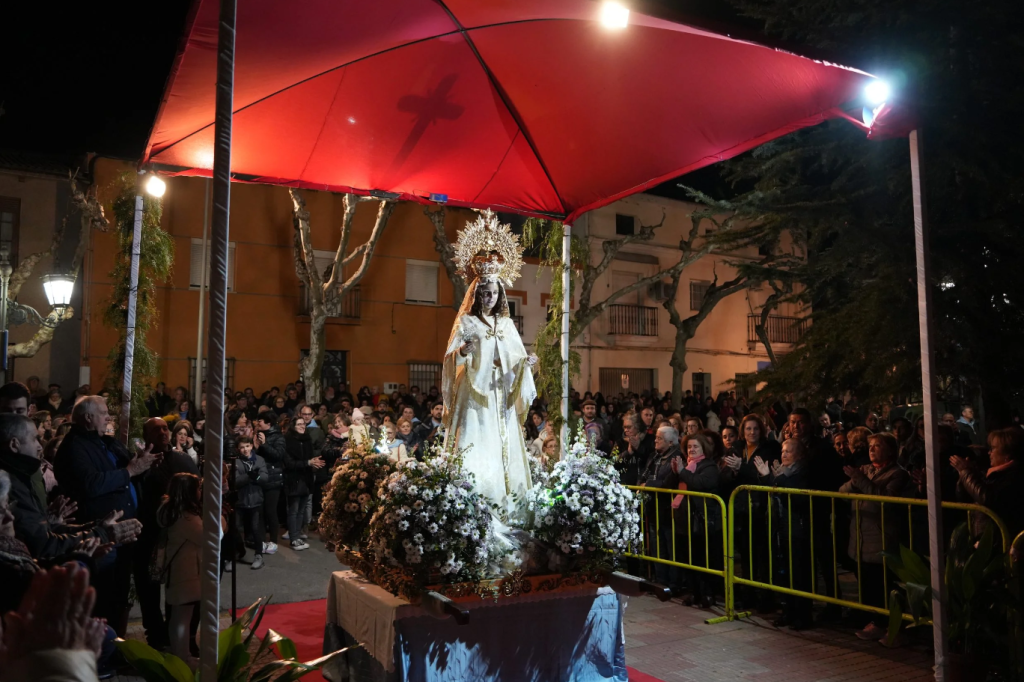 Sobre las 19:00 horas, será recibida a las puertas de la Iglesia de la Santa Cruz y desde allí, partirá en procesión acompañada por la Agrupación Musical Nuestro Padre Jesús Nazareno, hasta la parroquia Nuestra Señora de la Asunción, donde a la llegada de la Virgen, se celebrará la Solemne Eucaristía.