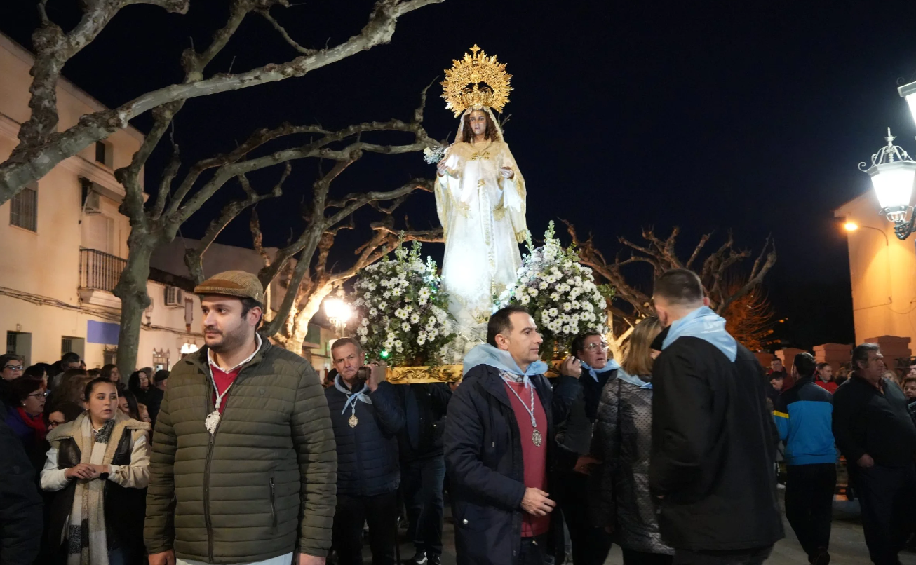Sobre las 19:00 horas, será recibida a las puertas de la Iglesia de la Santa Cruz y desde allí, partirá en procesión acompañada por la Agrupación Musical Nuestro Padre Jesús Nazareno, hasta la parroquia Nuestra Señora de la Asunción, donde a la llegada de la Virgen, se celebrará la Solemne Eucaristía.