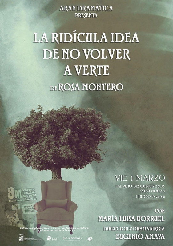 “La ridícula idea de no volver a verte” será la siguiente actividad. Se trata de un teatro que se llevará a cabo el 1 de marzo a las 20:30 horas en el palacio de congresos. Habrá un pase matinal destinado a los alumnos y alumnas de los institutos a las 12:00 horas.
