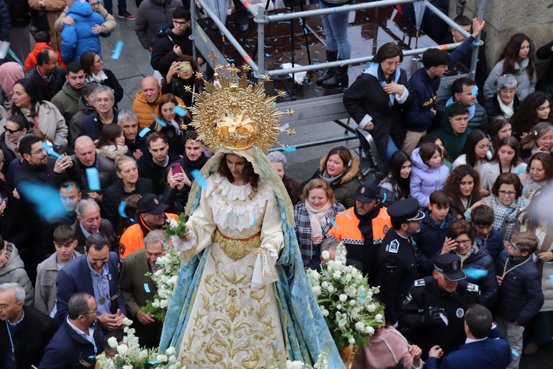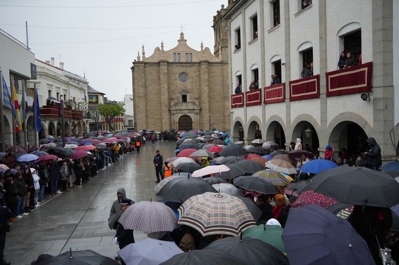 A pesar de la lluvia, que ha hecho amenazar durante un tiempo la suspensión de La Carrerita, y con una hora de retraso, la Virgen de la Aurora ha salido al encuentro de su hijo Jesús Resucitado este Domingo de Resurrección. La lluvia, por momentos intensa, no ha impedido que los villanovenses se mantuvieran a la espera confiando en que finalmente ese mágico momento tan esperado pudiera tener lugar y así ha sido. En esta ocasión, la Aurora iba portada por tres mujeres y un hombre.