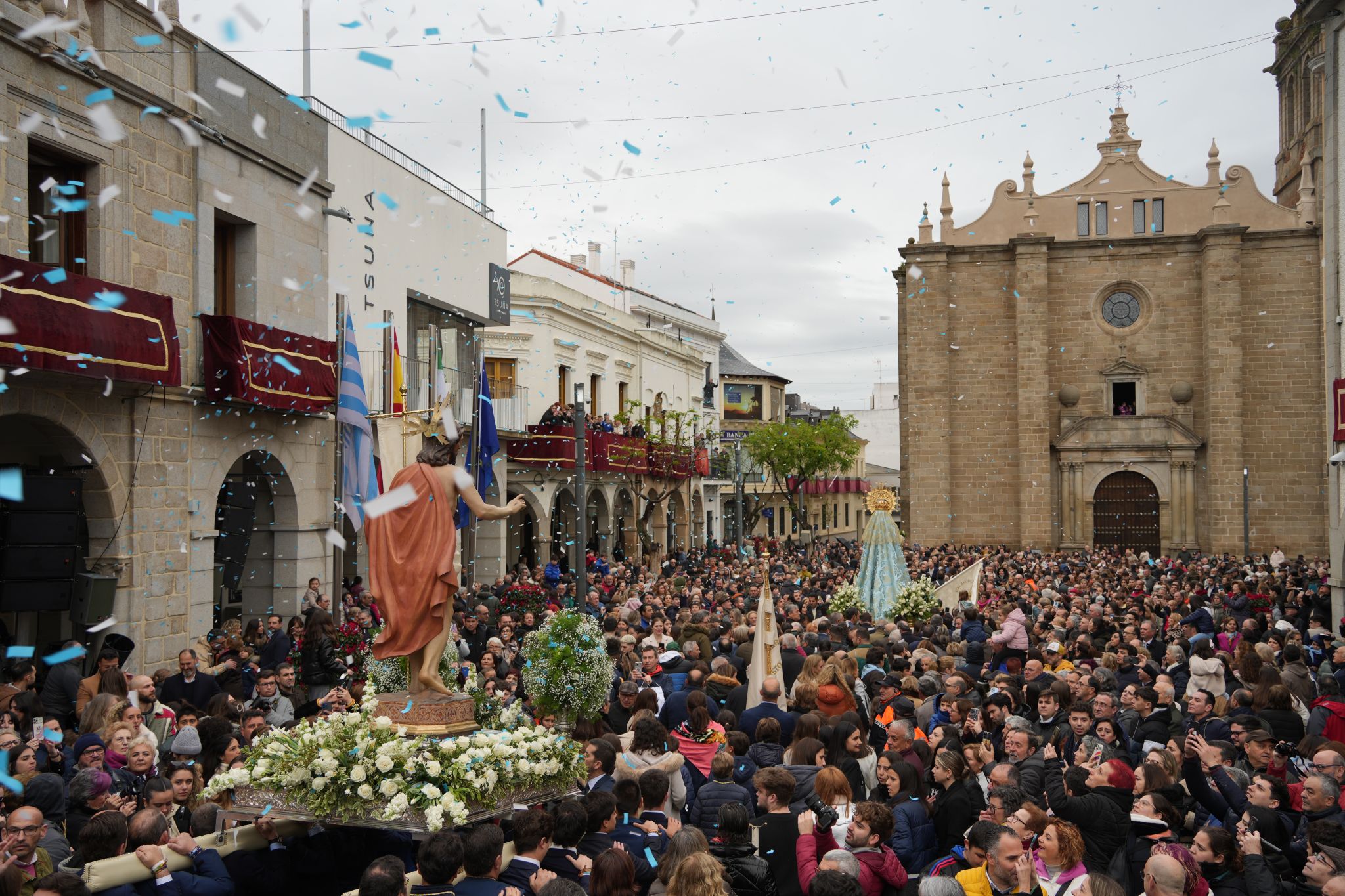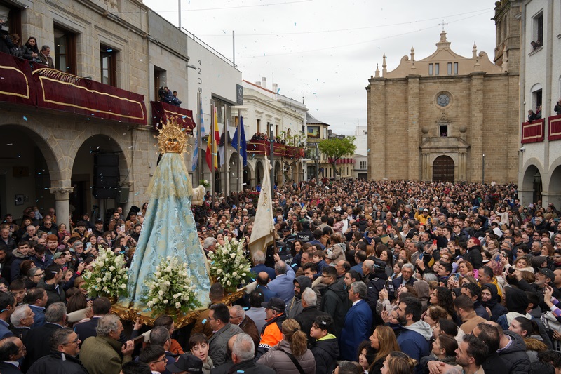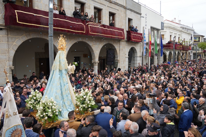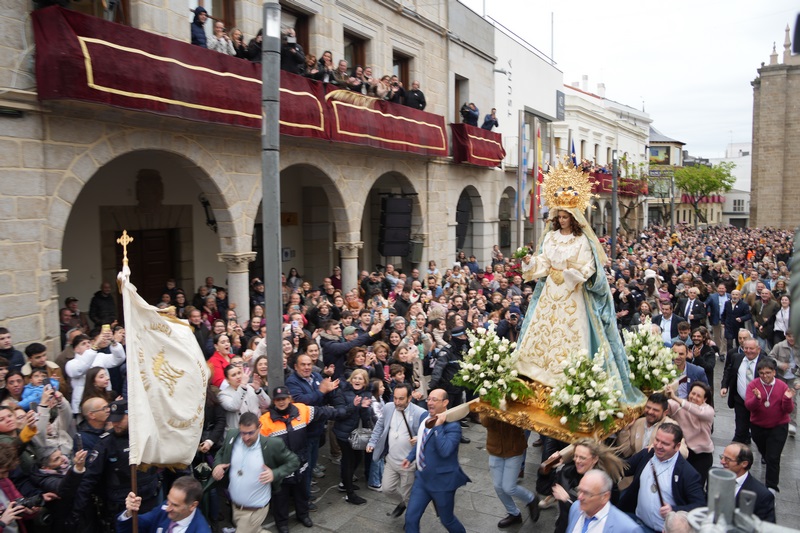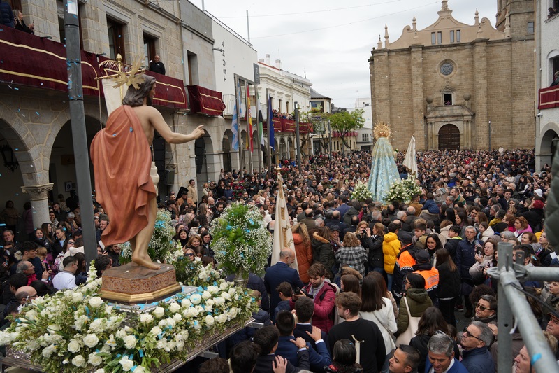 Y es que desde muy temprano, la actividad comienza en las casas para dirigirse hacia el lugar de encuentro de los villanovenses. Ya en la plaza de España, todos esperan emocionados el momento de ver la llegada de Jesús Resucitado, que sale desde su capilla, y que va al encuentro con su madre. La emoción se acrecienta cuando se ve salir a la Virgen de la Aurora por la Puerta de San Pedro. Inicia entonces una veloz carrera al encuentro con su hijo. Son unos segundos, pero la emoción corre por toda la plaza y se contiene la respiración mientras la Virgen corre al encuentro su hijo. Un encuentro que, un año más, también ha habido ocasión de poderlo ver desde cualquier parte del mundo a través de las redes sociales del Ayuntamiento.