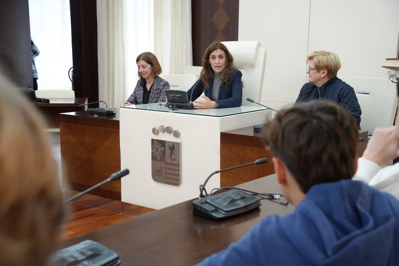 Durante su estancia y acompañados de los alumnos y alumnas del centro son diversas las actividades a realizar donde, además, podrán degustar y conocer la gastronomía local. En esta ocasión, este lunes 8 de abril, han visitado el Ayuntamiento y les ha recibido la alcaldesa Ana Belén Fernández quien les ha dado la bienvenida “a una ciudad acogedora, que tiene todos los servicios que se necesitan y que le encanta recibir a otros ciudadanos”. Además, les ha explicado que aquí nació la tortilla de patatas al tiempo que ha puesto en valor las fiestas patronales de Santiago y Santa Ana.
