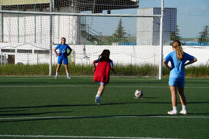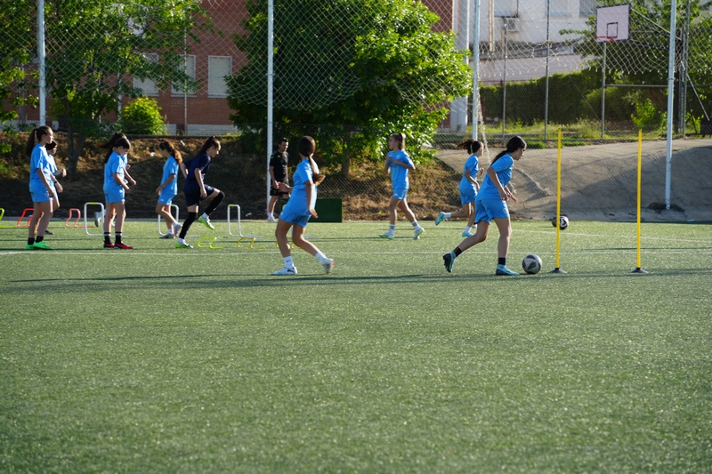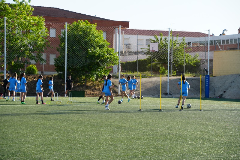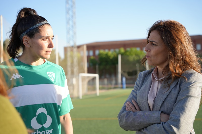 La alcaldesa Ana Belén Fernández acompañó a las jugadoras del CF Villanovense Femenino en uno de sus entrenamientos que realizan en el campo de césped artificial del IES Pedro de Valdivia el pasado martes 23 de abril.  Un club que nació en el año 2019 y que cuenta actualmente con un total de 156 jugadoras de edades comprendidas entre los 4 y los 33 años, que componen diferentes categorías que van desde prebenjamín hasta senior, esta última, posicionadas segundas en la liga.