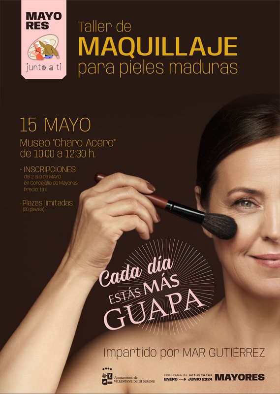 El próximo 15 de mayo, se impartirá un taller de maquillaje para pieles maduras destinadas a personas jubiladas o pensionistas. Se trata de un curso que tendrá dos horas y media de duración y que se desarrollará en el Centro Museístico Charo Acero.