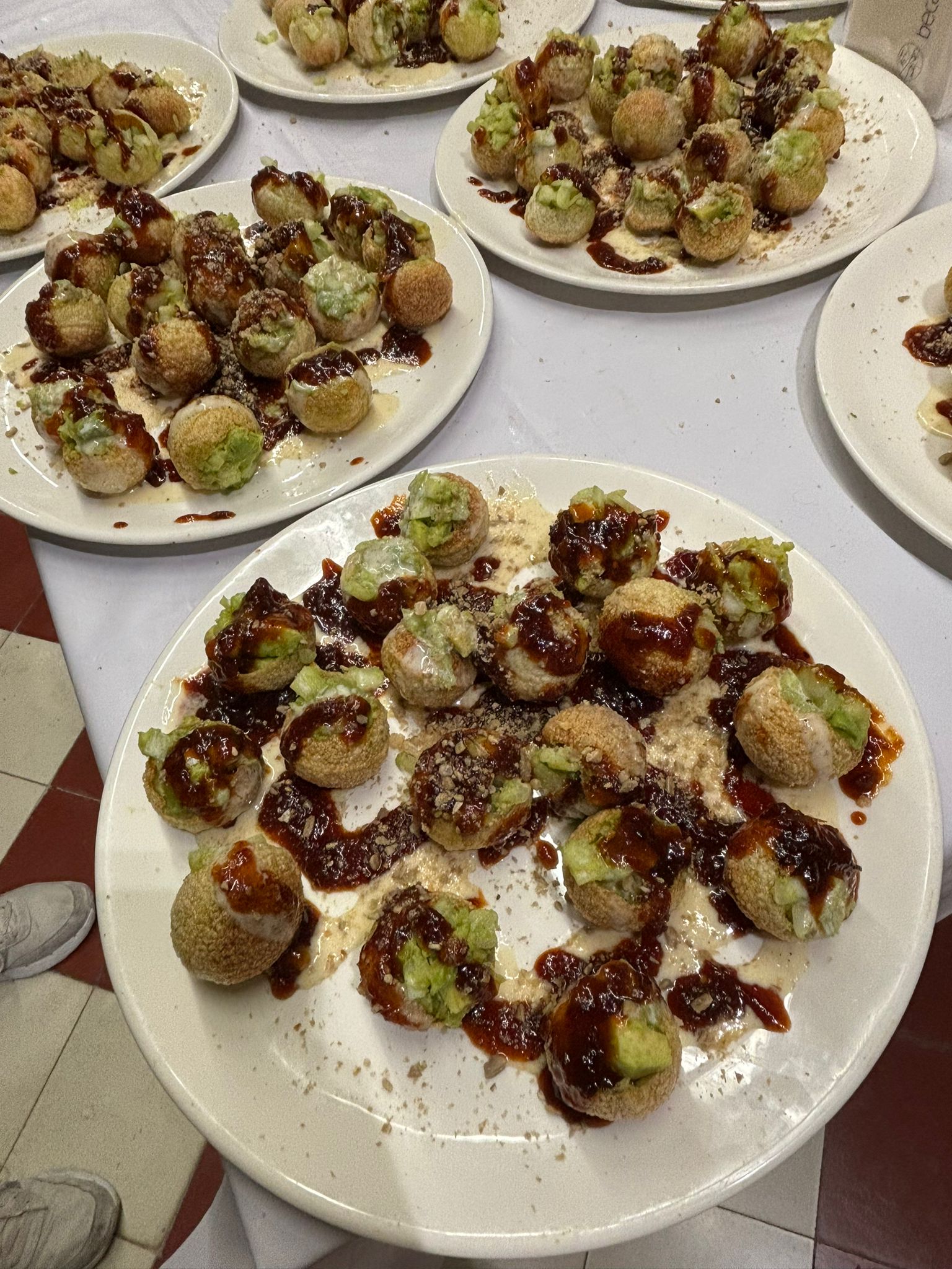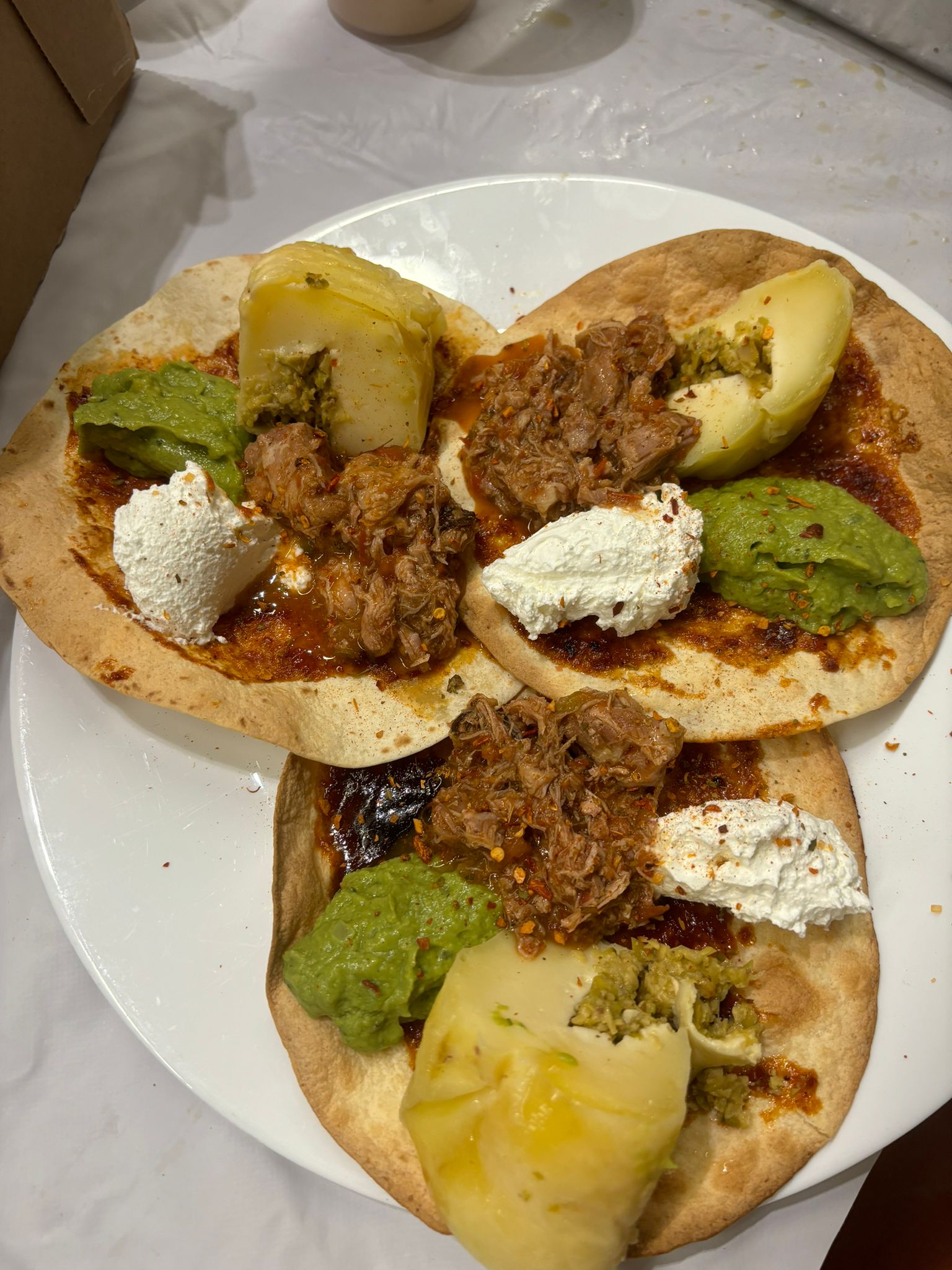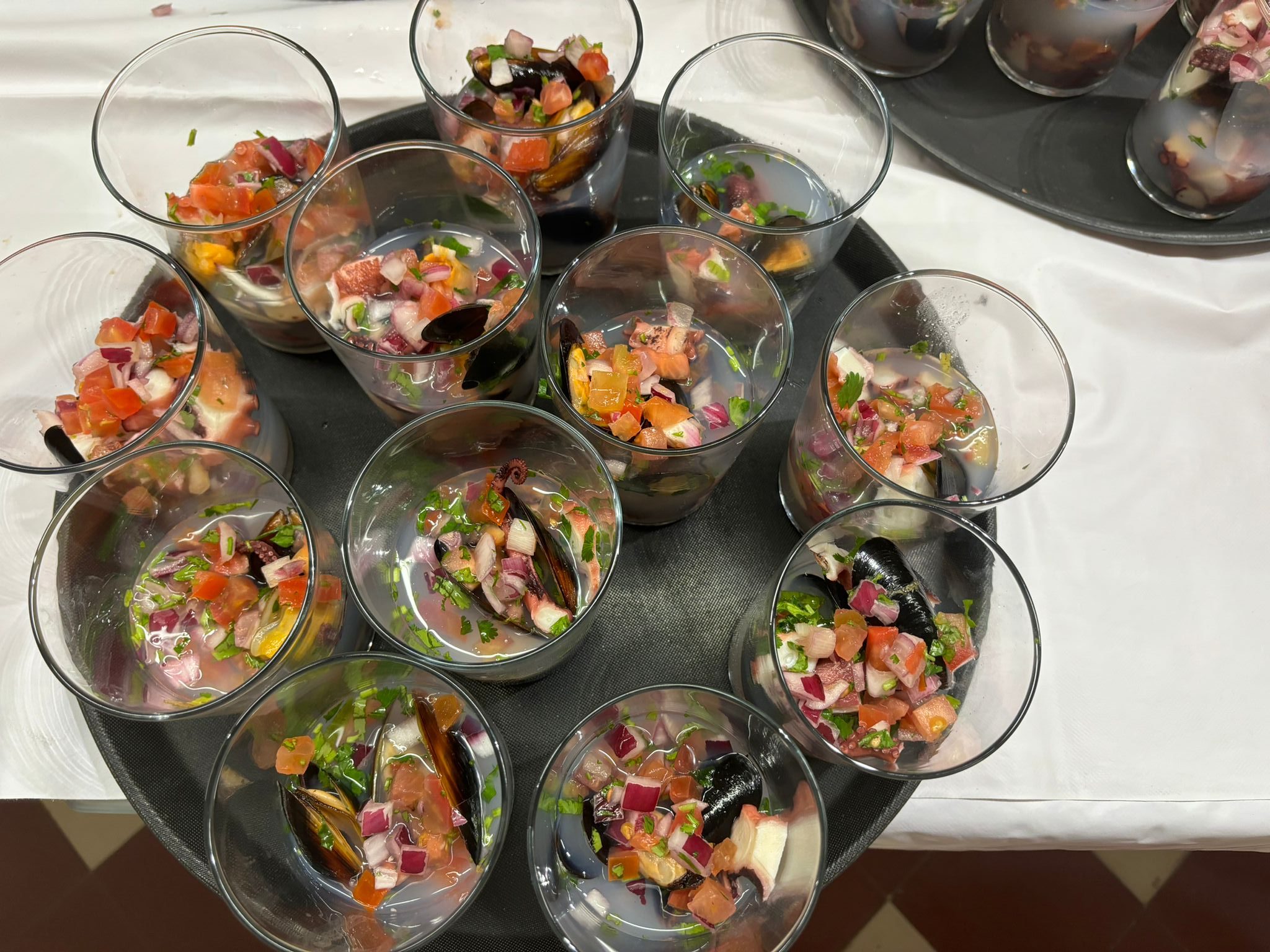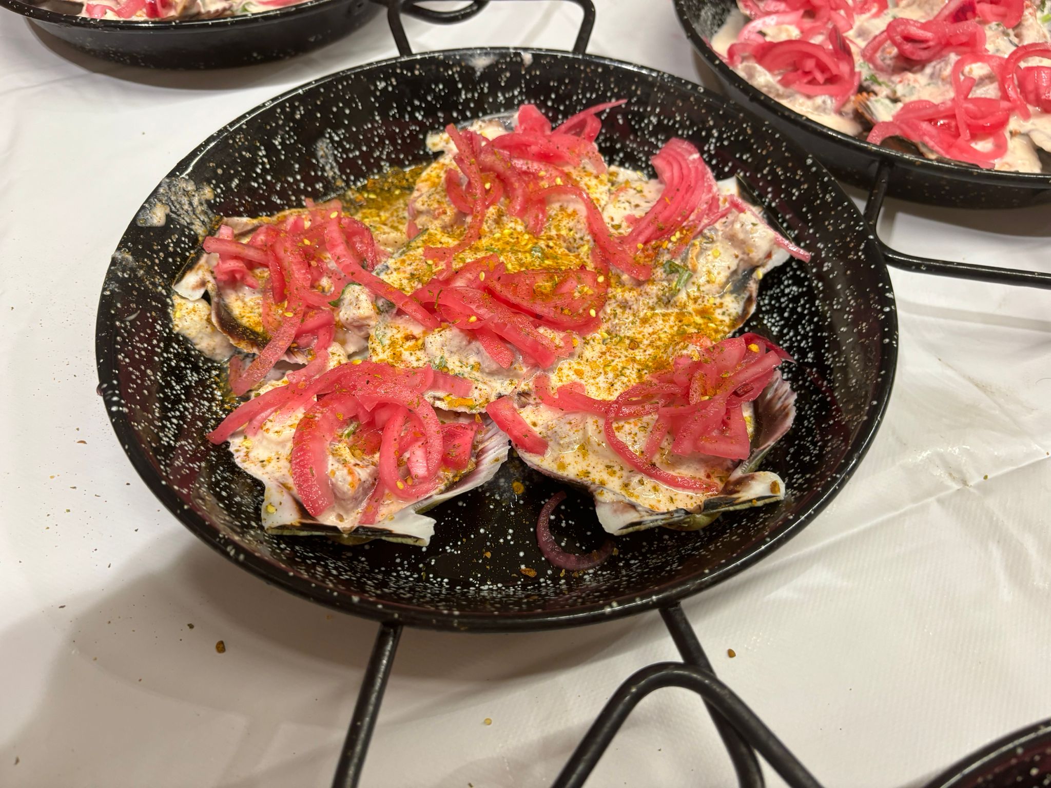 Con respecto a las tapas, fueron, ceviche de atún y zamburiñas con leche de coco, ají rojo y cebolla morada, aguachile de mejillones y pulpo con encurtidos, pani puri con crudités de aguacate, cebolla y salsas buttermilk y spice de tomate, taco de spice de tomate y pulled pork con queso asado con anchoas, alcaparras, ajo negro, crema agria y guacamole y de postre, un pequeño burrito de piña asada y crema pastelera.