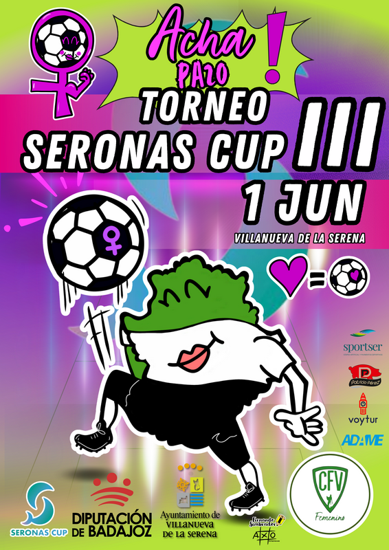 Más de 500 futbolistas extremeñas se darán cita en el mayor torneo de la región el próximo fin de semana. Se trata del tercer Torneo Seronas Cup que se disputará el próximo sábado 1 de junio a partir de las nueve de la mañana. María Lozano, concejala de Deportes señala que participarán un total de 12 clubes femeninos procedentes de toda Extremadura que jugarán simultáneamente en los cuatro campos de fútbol de la ciudad, concretamente en el Estadio Municipal Villanovense, el Romerito, el campo del IES Pedro de Valdivia y el anexo a él.