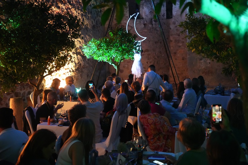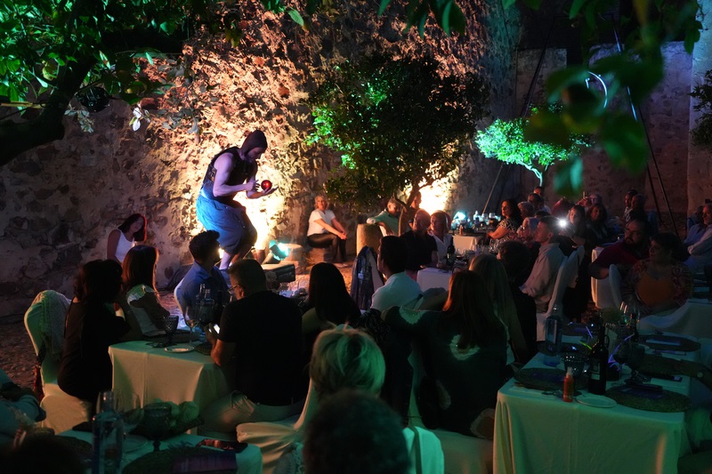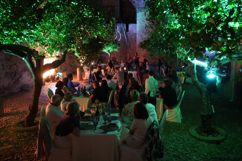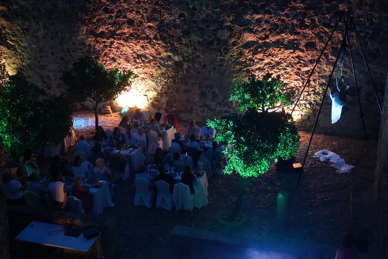 Al igual que en otros meses, los asistentes han tenido la ocasión de disfrutar de cuatro tapas elaboradas en esta ocasión por el restaurante del Hotel Cortijo Santa Cruz además de un espectáculo de malabares de fuego y acrobacia aérea.