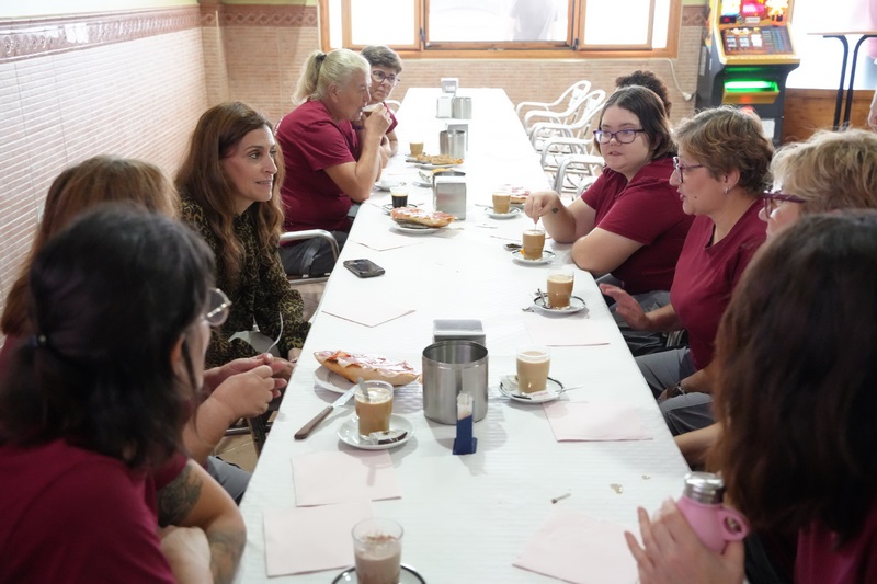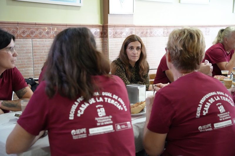 La alcaldesa Ana Belén Fernández tiene un desayuno de trabajo con los alumnos de la escuela profesional “Casa de la Tercia” especialidad albañilería. Una especialidad compuesta por un total de 15 participantes que están aprendiendo la profesión.