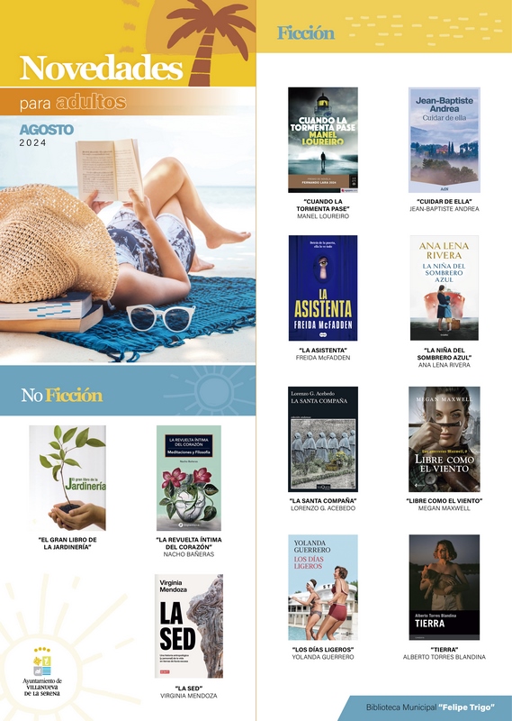 Con respecto a las novedades para adultos, se incorporan diversos nuevos títulos, entre los que destacan: “El gran libro de la jardinería”, “La revuelta íntima del corazón” de Nacho Bañeras, “La sed” de Virginia Mendoza, “Cuando la tormenta pase” de Manel Lureiro, “Cuidar de ella” de Jean-Baptiste Andrea, “La asistenta” de Freida McFadden, “La niña del sobrero azul” de Ana Lena Rivera, “La santa compaña” de Lorenzo G. Acebedo, “Libre como el viento” de Megan Maxwell, “Los días ligeros” de Yolanda Guerrero y “Tierra” de Alberto Torres Blandina.