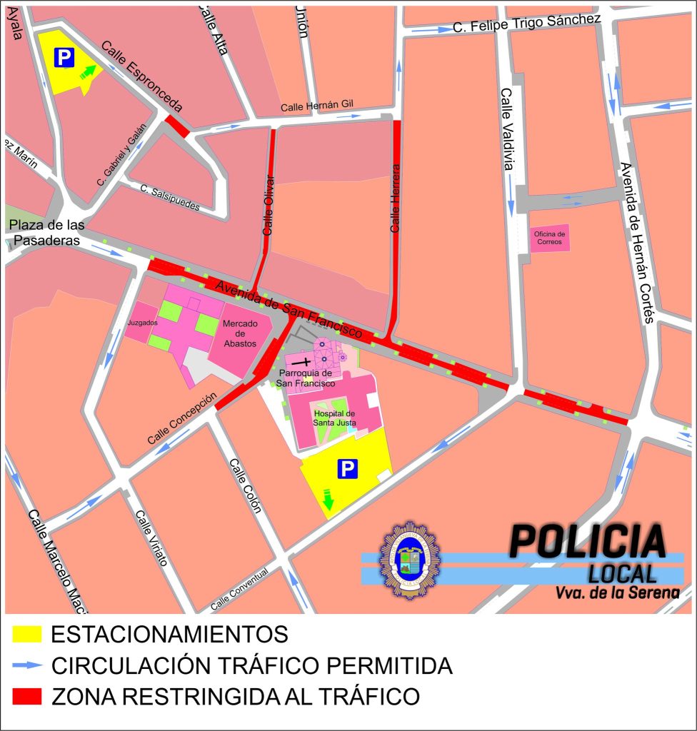 Estos cortes concretamente serán la avenida de San Francisco desde la calle Viriato hasta la calle Valdivia, así como del tramo de la calle Valdivia hasta la avenida de Hernán Cortés. Se suma el tramo comprendido de la calle Concepción esquina con Colón hasta la avenida de San Francisco y el primer tramo de la calle Herrera y la calle Olivar. El último corte será en la calle Espronceda en el tramo comprendido de Gabriel y Galán a Hernán Gil.