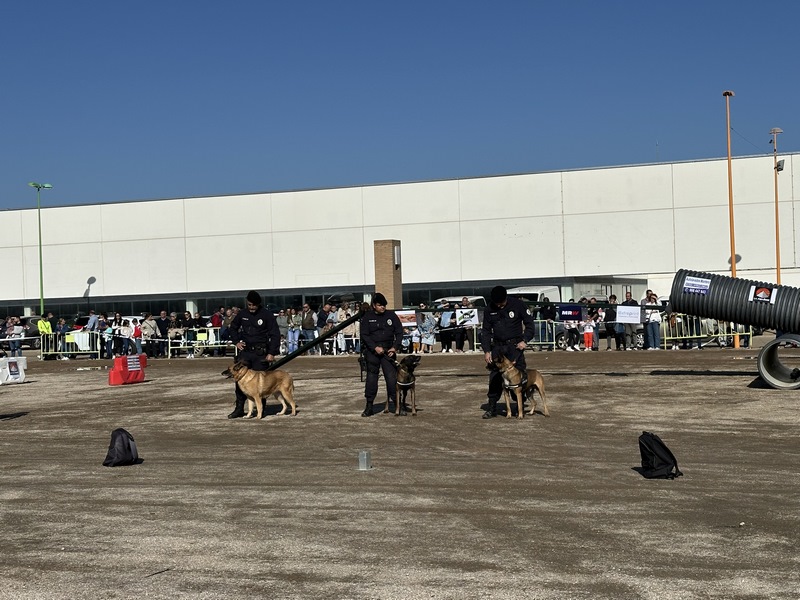 Una actividad donde todos los ciudadanos que se acercaron al recinto ferian, pudieron ver como los perros policías han llevado a cabo distintos ejercicios de búsqueda en objetivos, en personas paradas y en movimiento además de intervenir reduciendo a una persona que está robando un vehículo o incluso si está manteniendo una actitud agresiva y además tiene un arma de fuego.