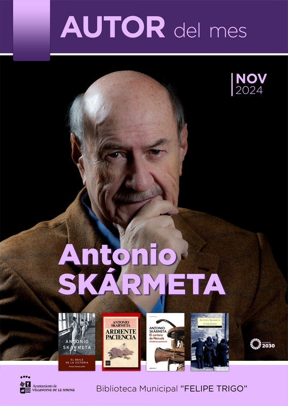 Por otra parte, el autor del mes en esta ocasión es Antonio Skármeta. Se trata de un escritor y dramaturgo chileno conocido por su obra literaria que abarca novelas, cuentos y ensayos al tiempo que ha sido una figura influyente en la literatura latinoamericana contemporánea. Son cuatro los títulos que se encuentran en la biblioteca, en concreto, “El baile de la victoria”, “Ardiente paciencia”, “El cartero de Neruda” y “La boda del poeta”.